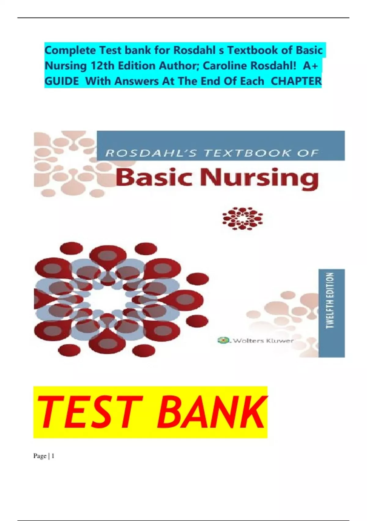 ,Rosdahl's Textbook of Basic Nursing 12th Edition Test Bank