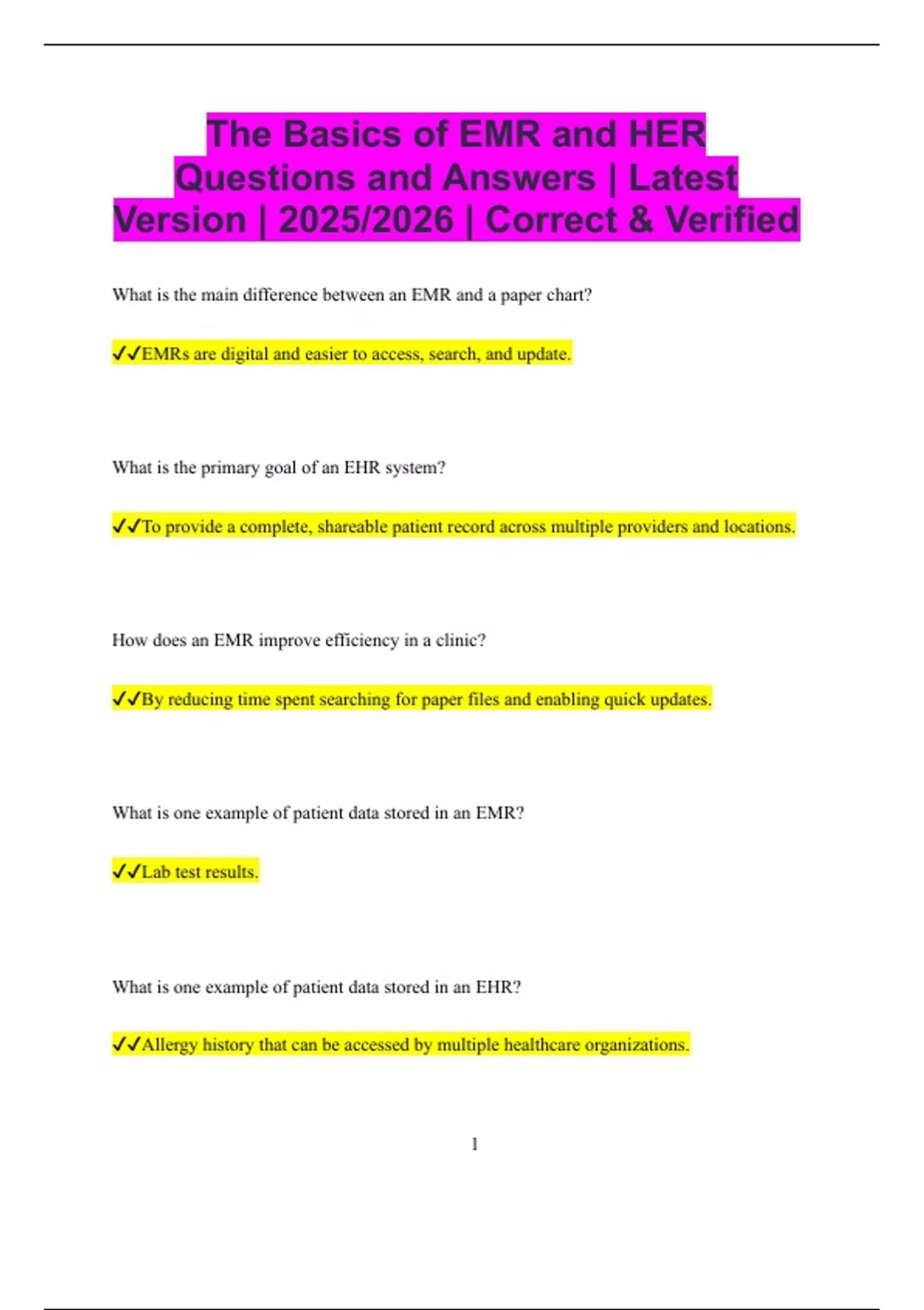 ✔✔EMRs are digital and easier to access, search, and update.