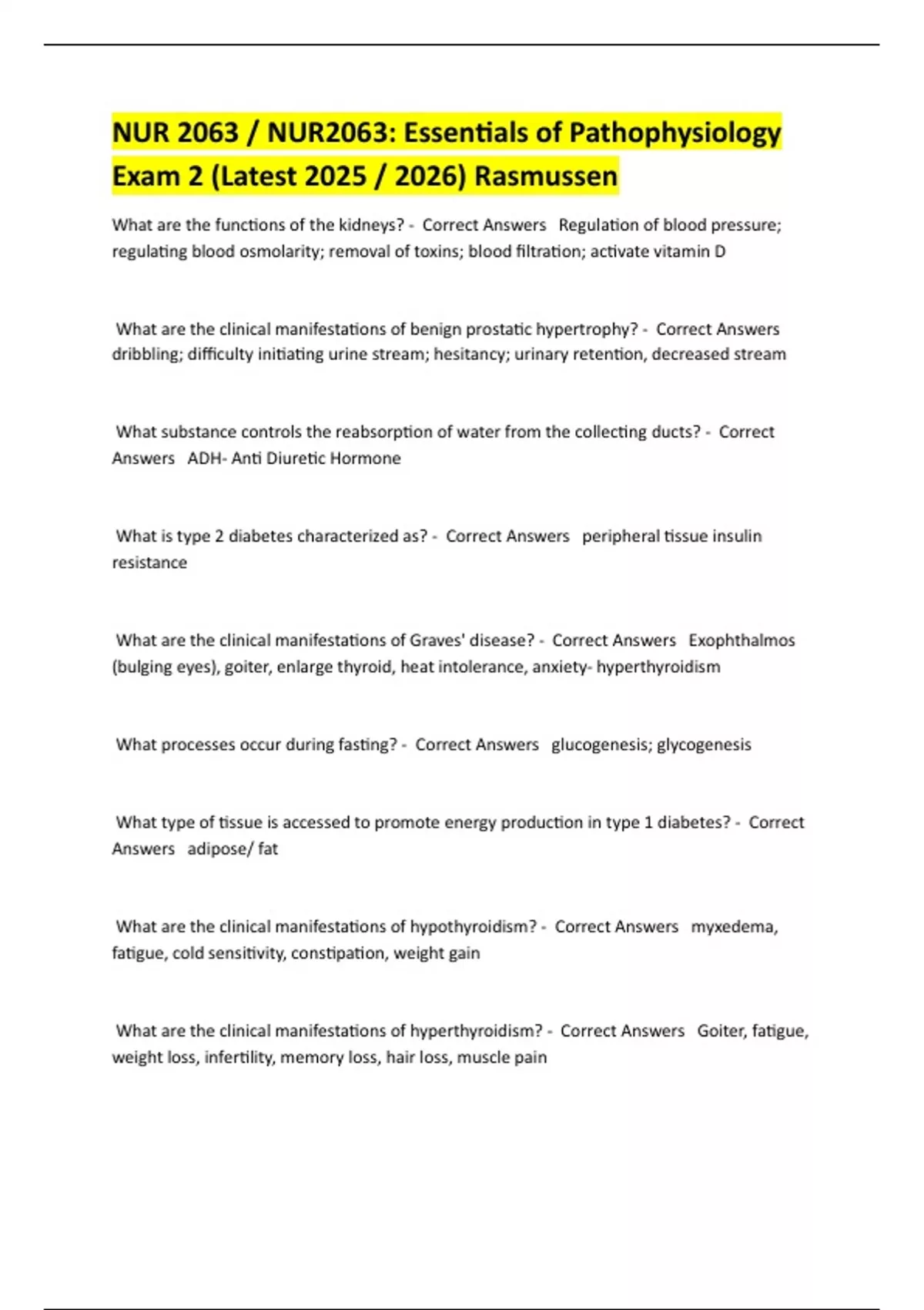 What is diabetes insipidus? - Correct Answers a disorder caused by inadequate amounts of
