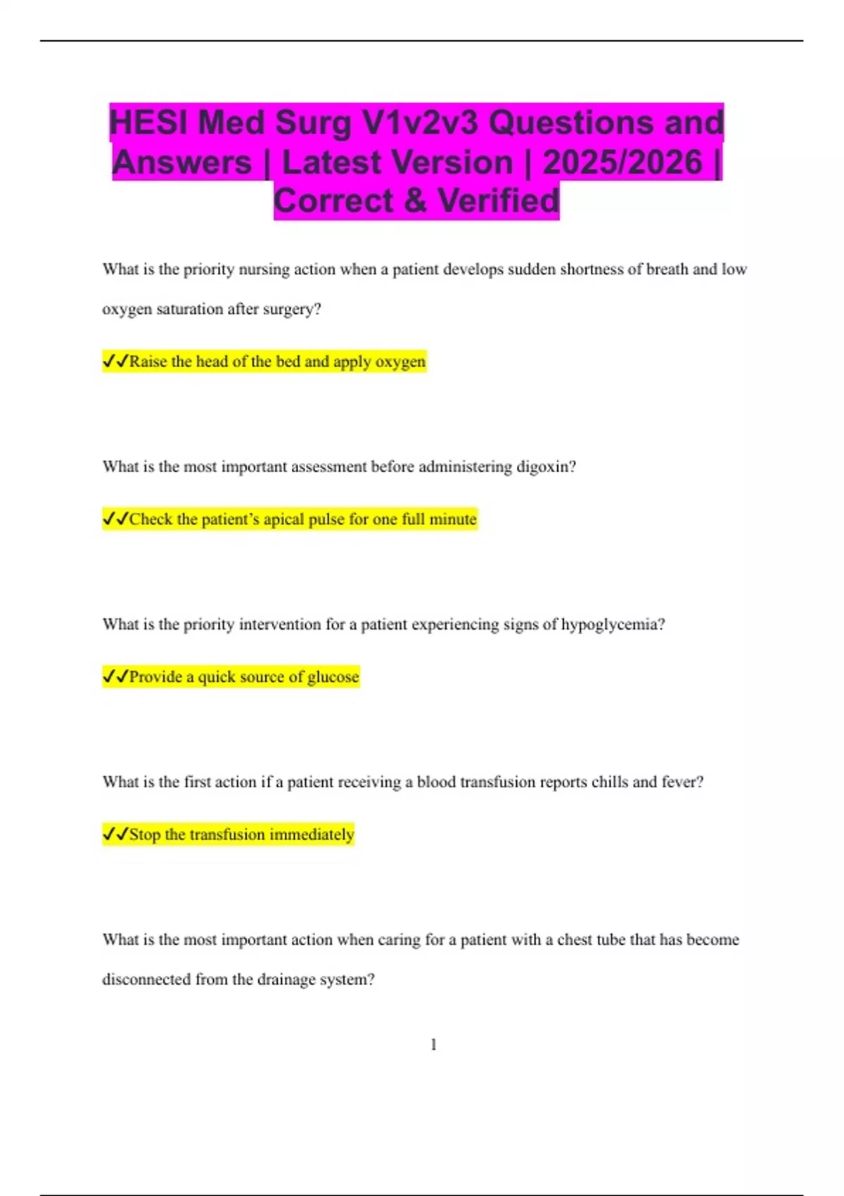 ✔✔Check the patient’s apical pulse for one full minute
