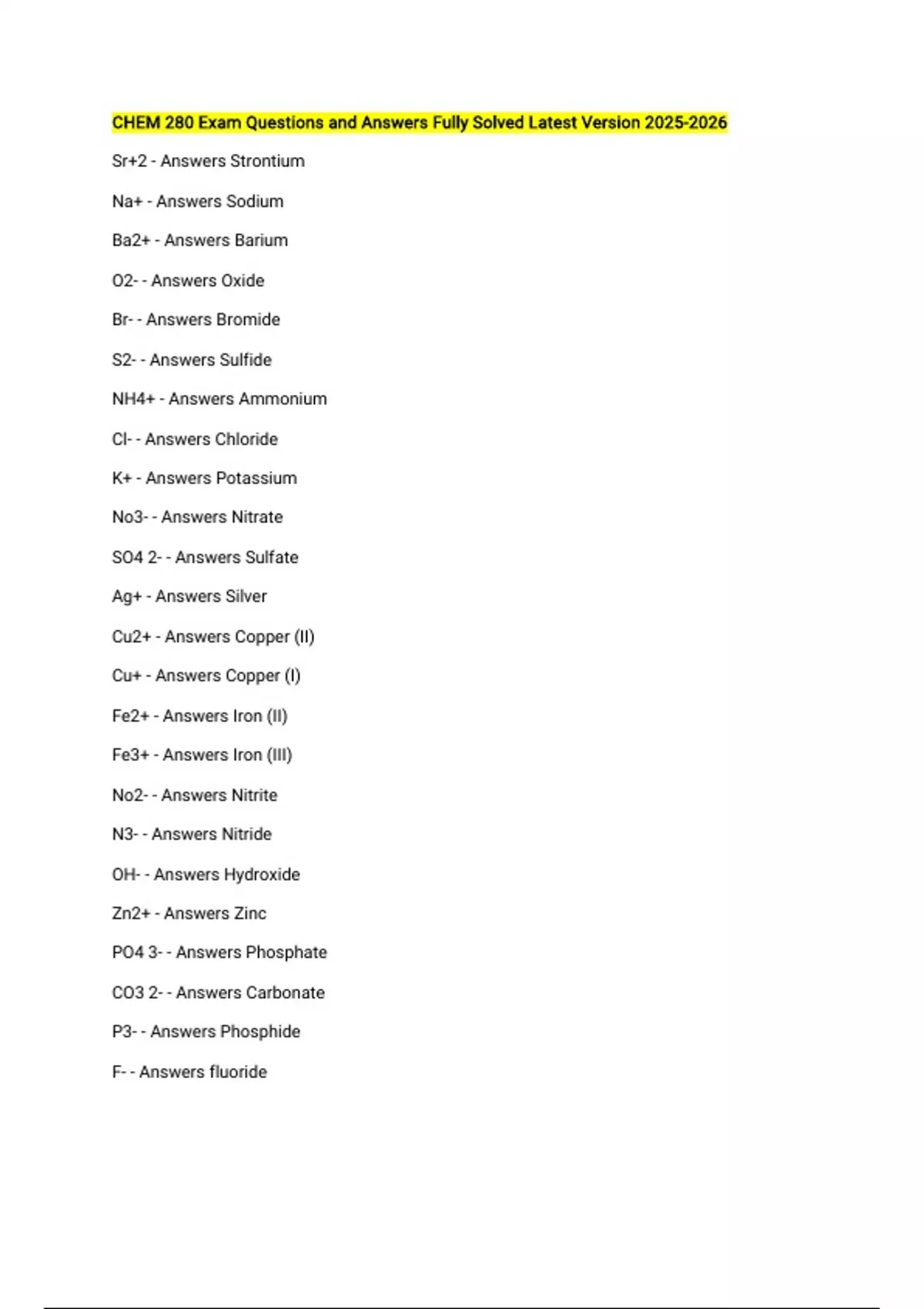SO4 2- - Answers Sulfate