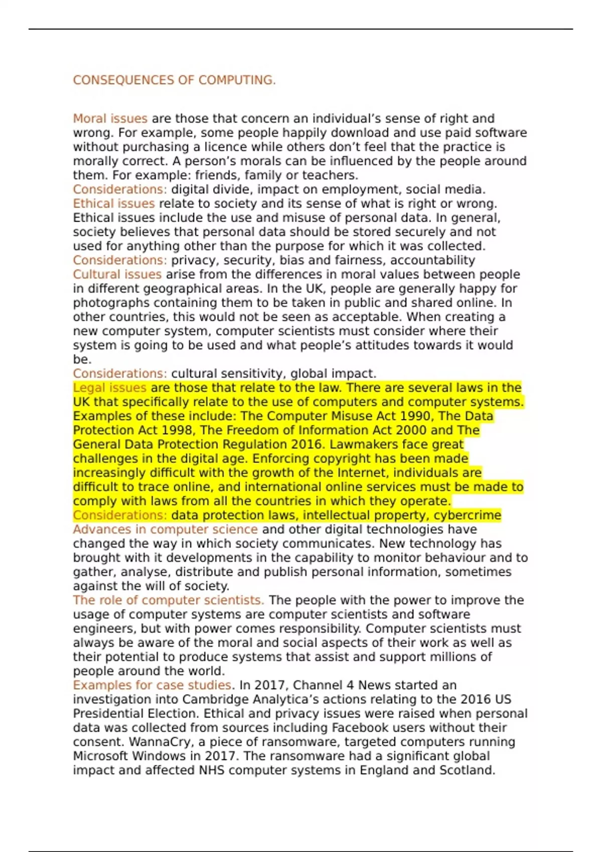Examples of these include: The Computer Misuse Act 1990, The Data