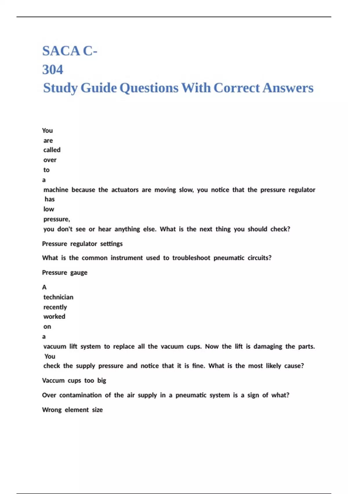 Study Guide Questions With Correct Answers