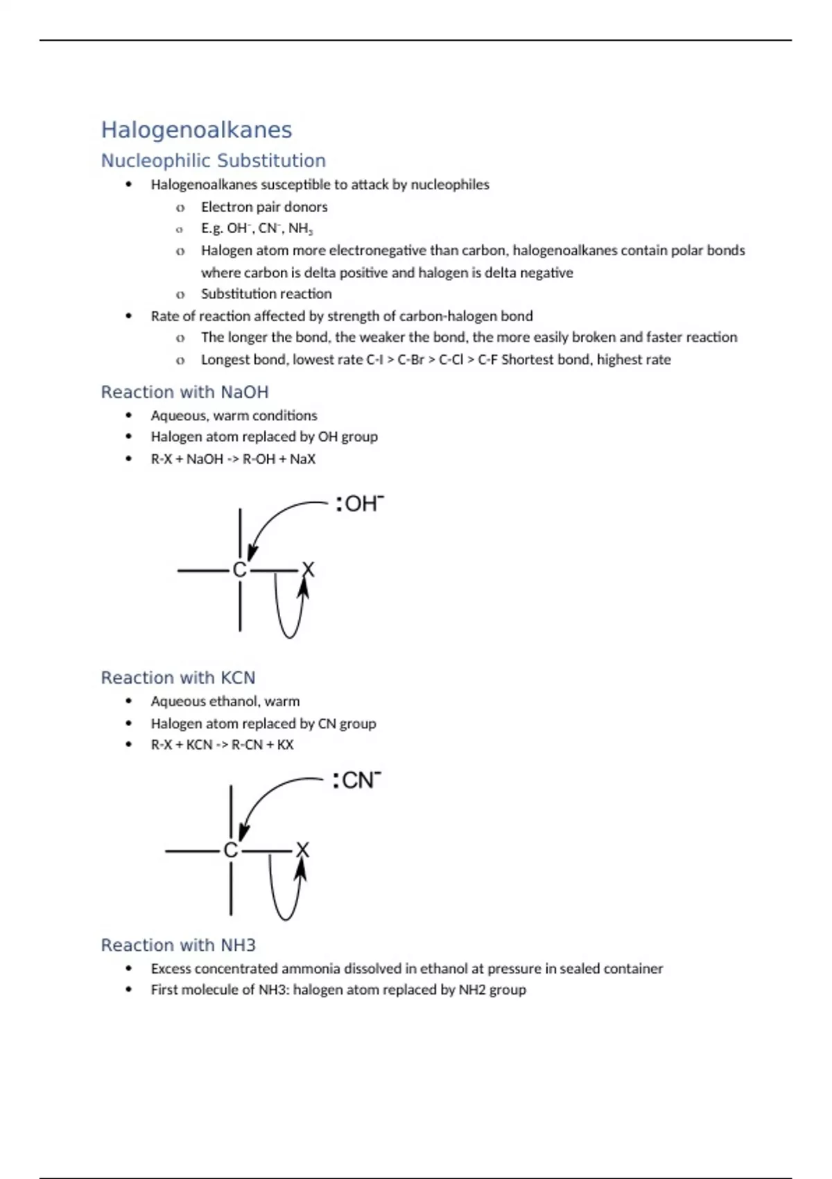 Summary Halogenoalkanes Notes - AQA Chemistry A Level