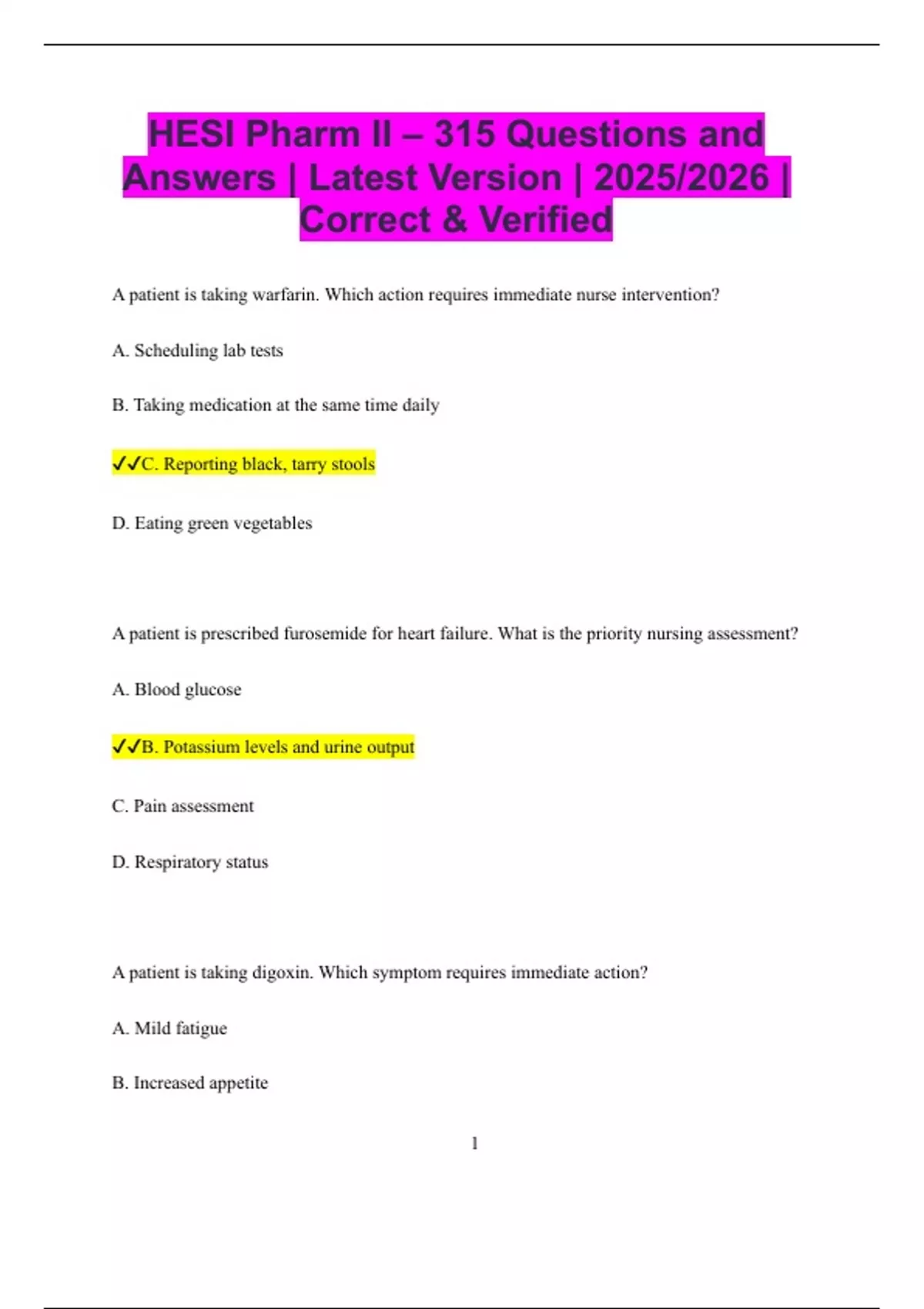 ✔✔C. Reporting black, tarry stools