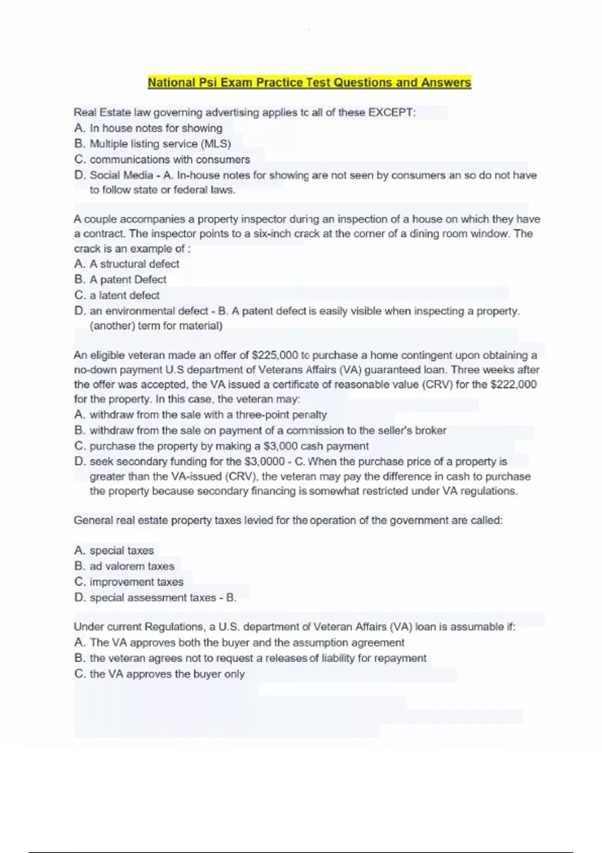 National Psi Exam Practice Test Questions and Answers National Psi Exam Practice Test Questions and Answers
