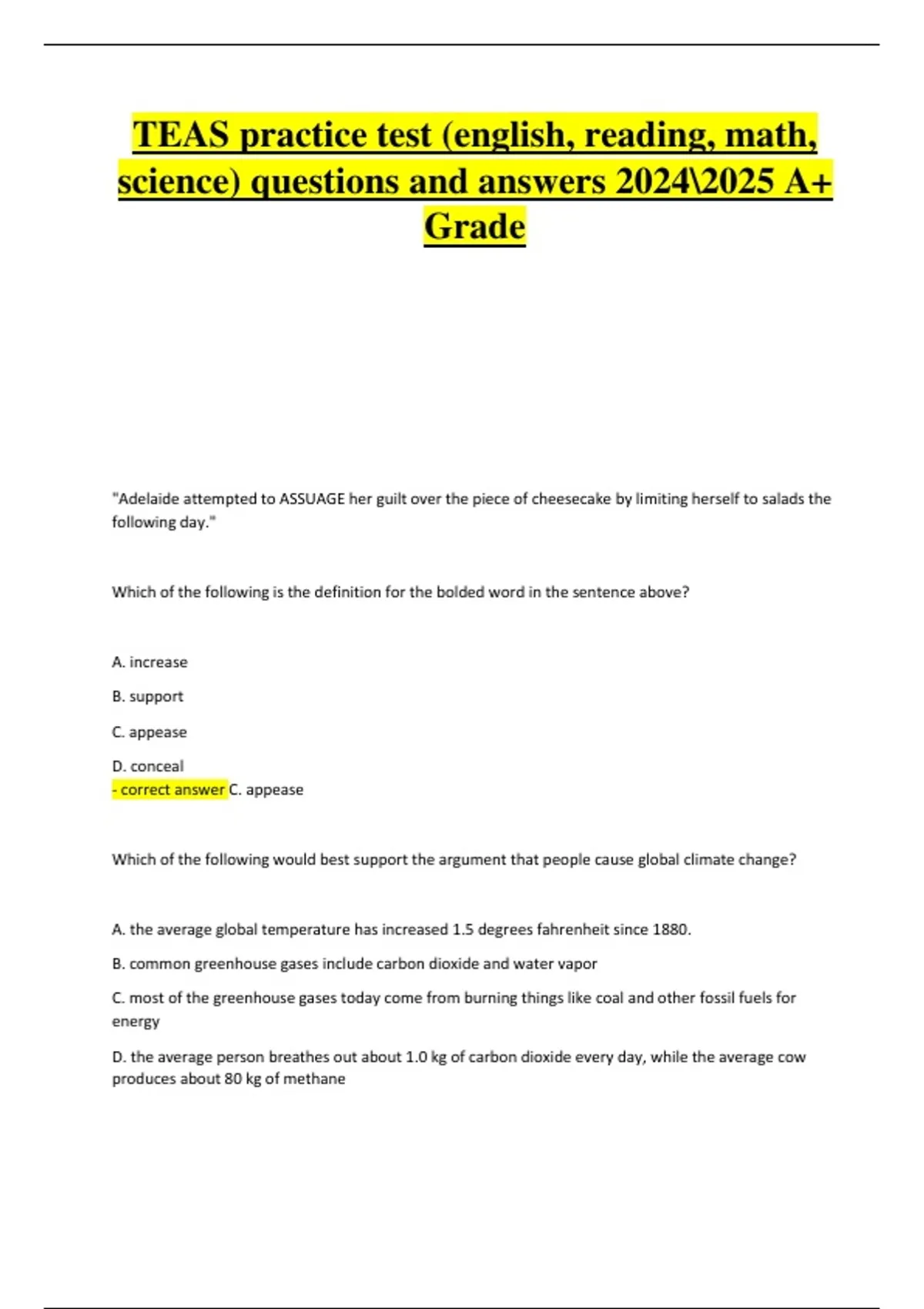- correct answer C. appease