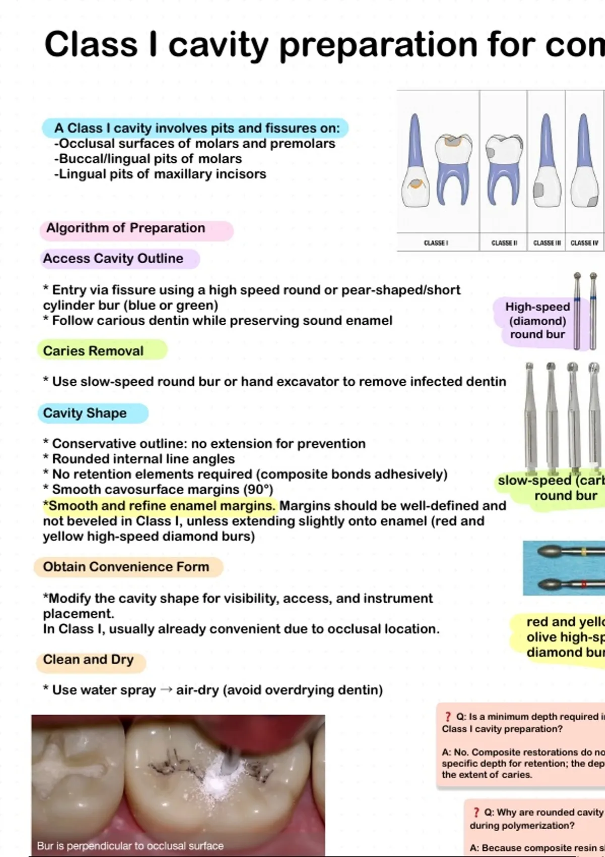Class I cavity preparation for com