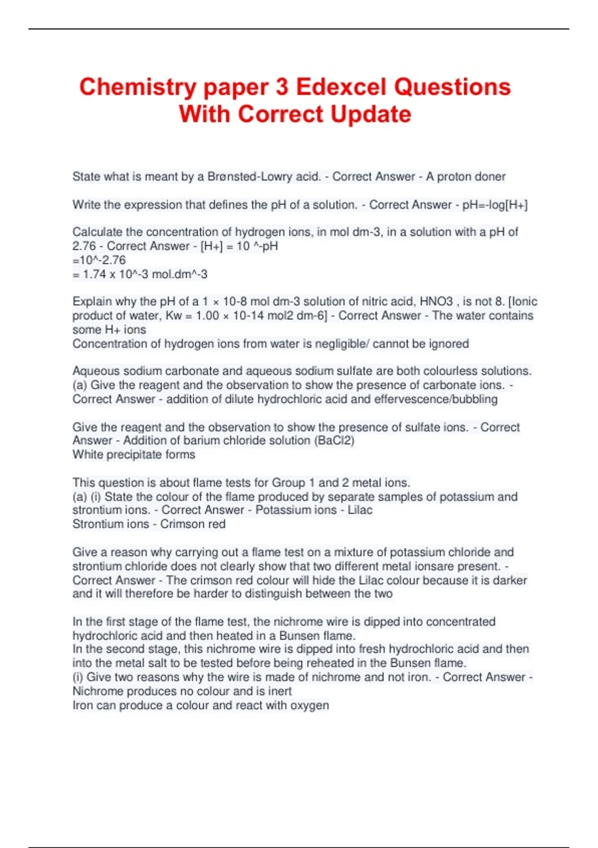 Chemistry paper 3 Edexcel Questions With Correct UpdateChemistry paper 3 Edexcel Questions With Correct UpdateChemistry paper 3 Edexcel Questions With Correct UpdateChemistry paper 3 Edexcel Questions With Correct Update