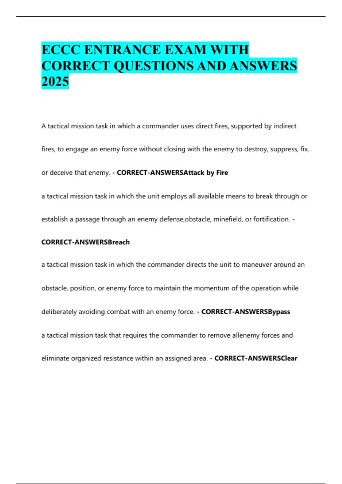 ECCC ENTRANCE EXAM WITH CORRECT QUESTIONS AND ANSWERS 2025