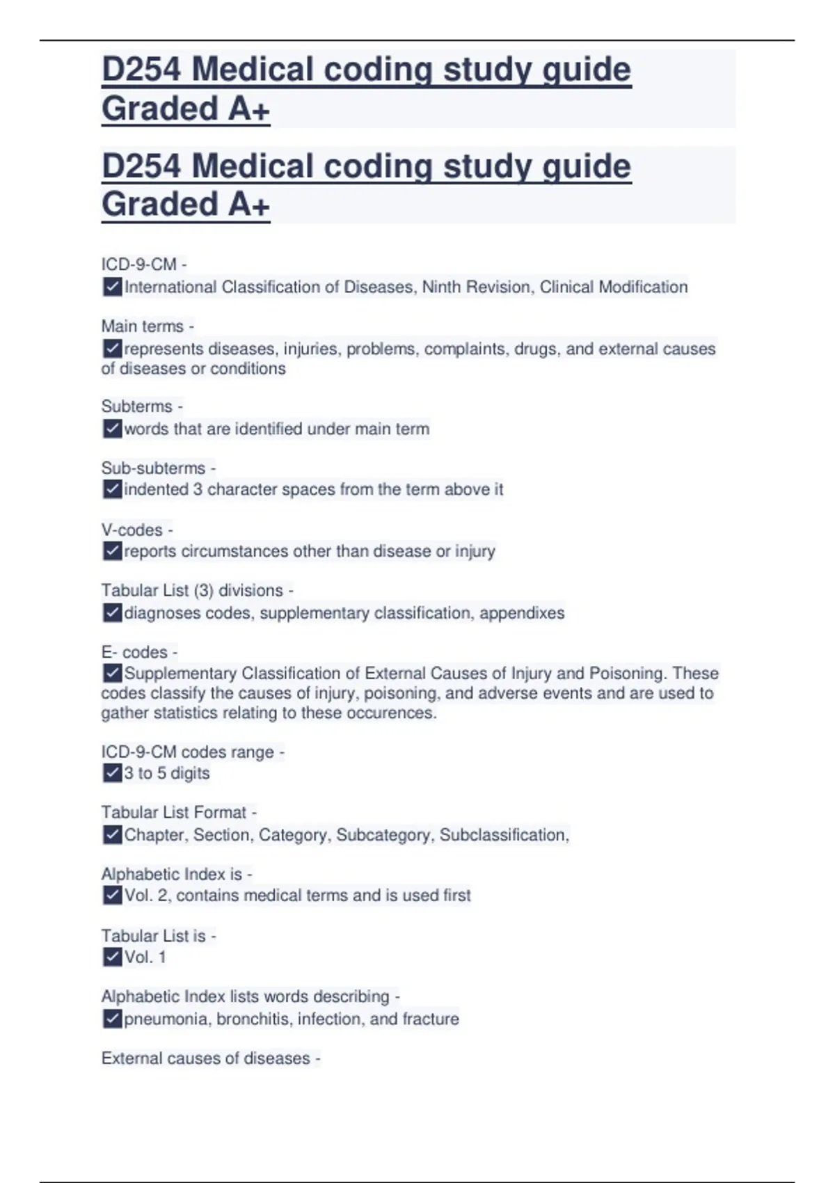 D254 Medical coding study guide Graded A+
