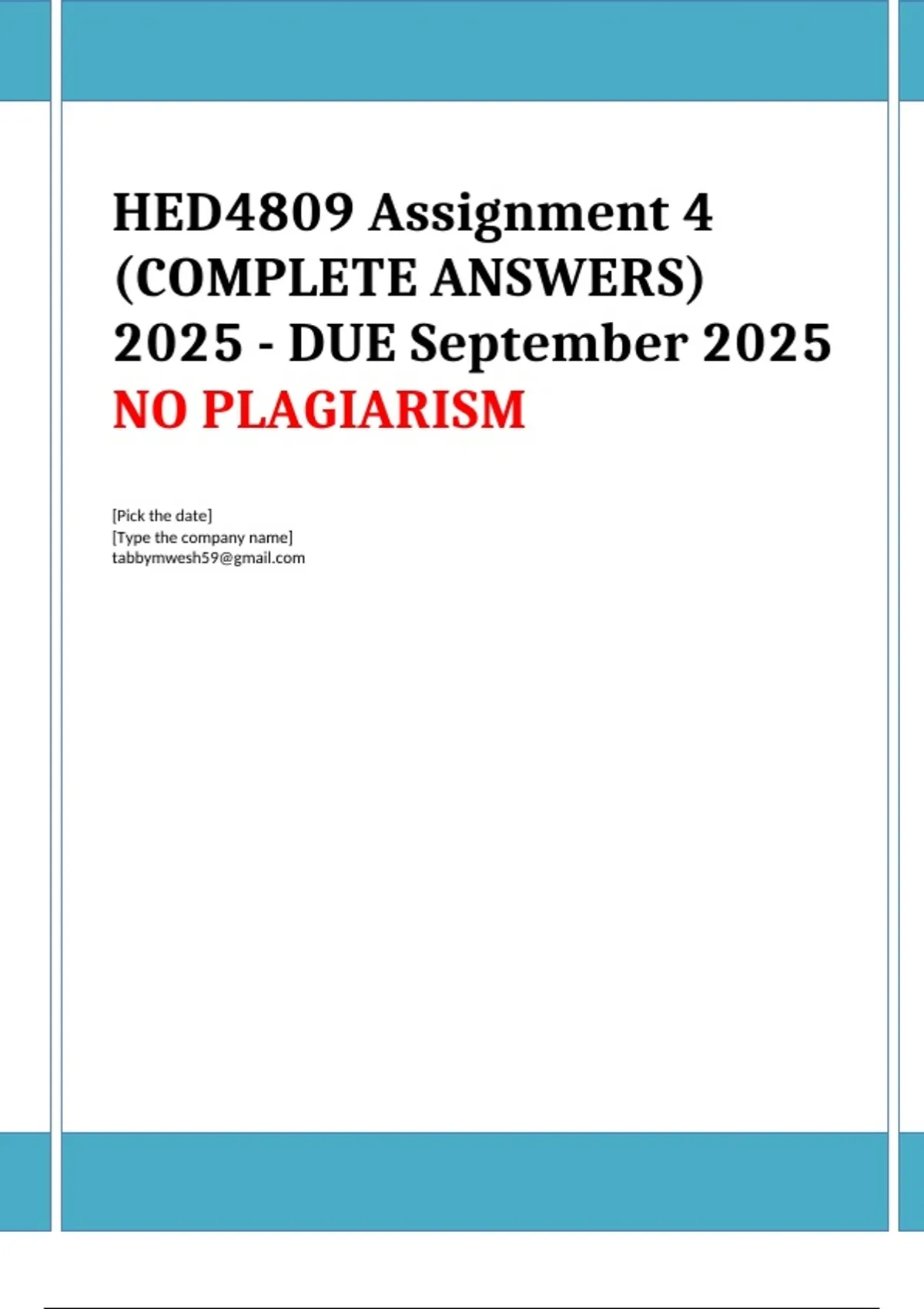 HED4809 Assignment 4 (COMPLETE ANSWERS) 2025 - DUE September 2025;