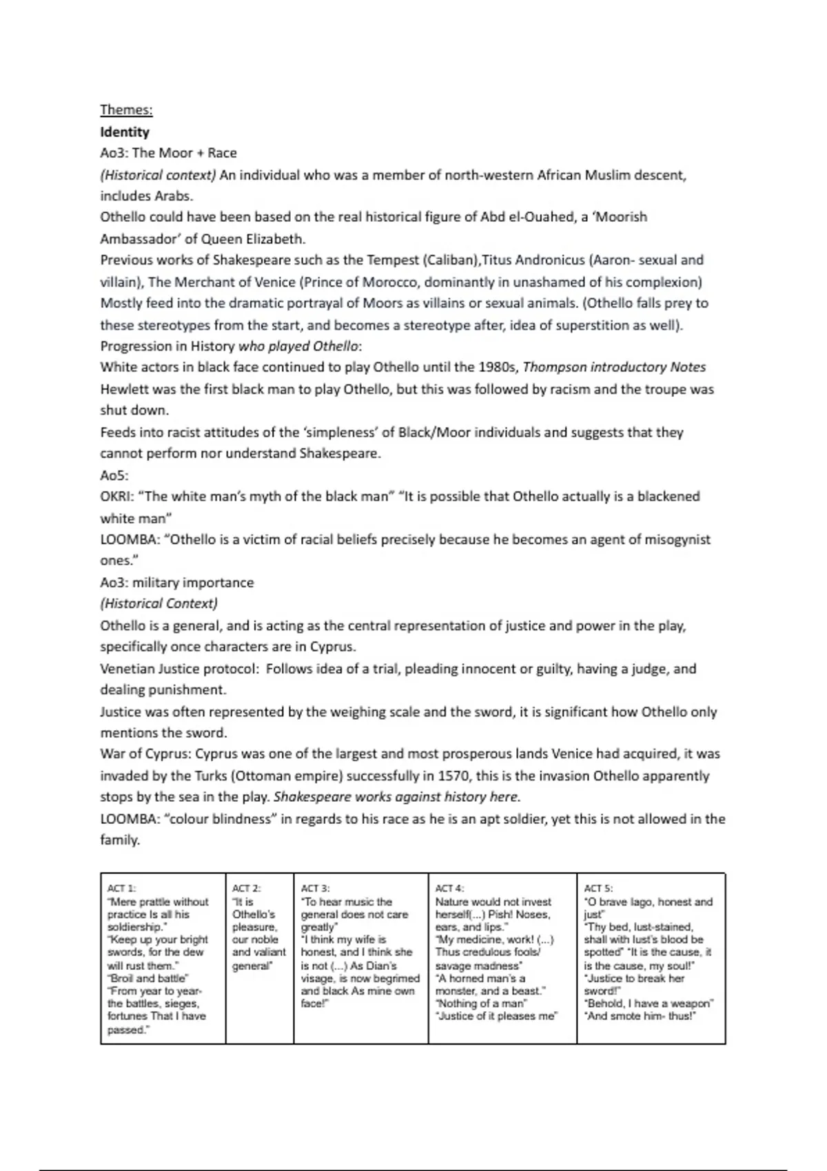 LOOMBA: “Othello is a victim of racial beliefs precisely because he becomes an agent of misogynist
