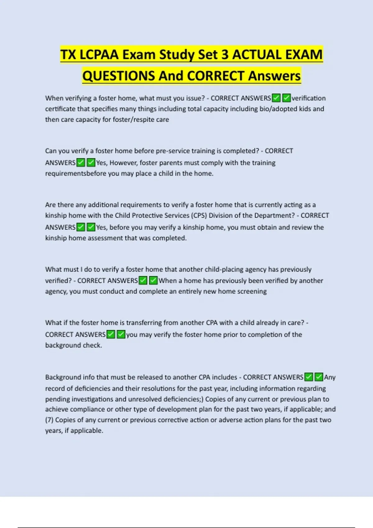 CORRECT ANSWERS you may verify the foster home prior to completion of the