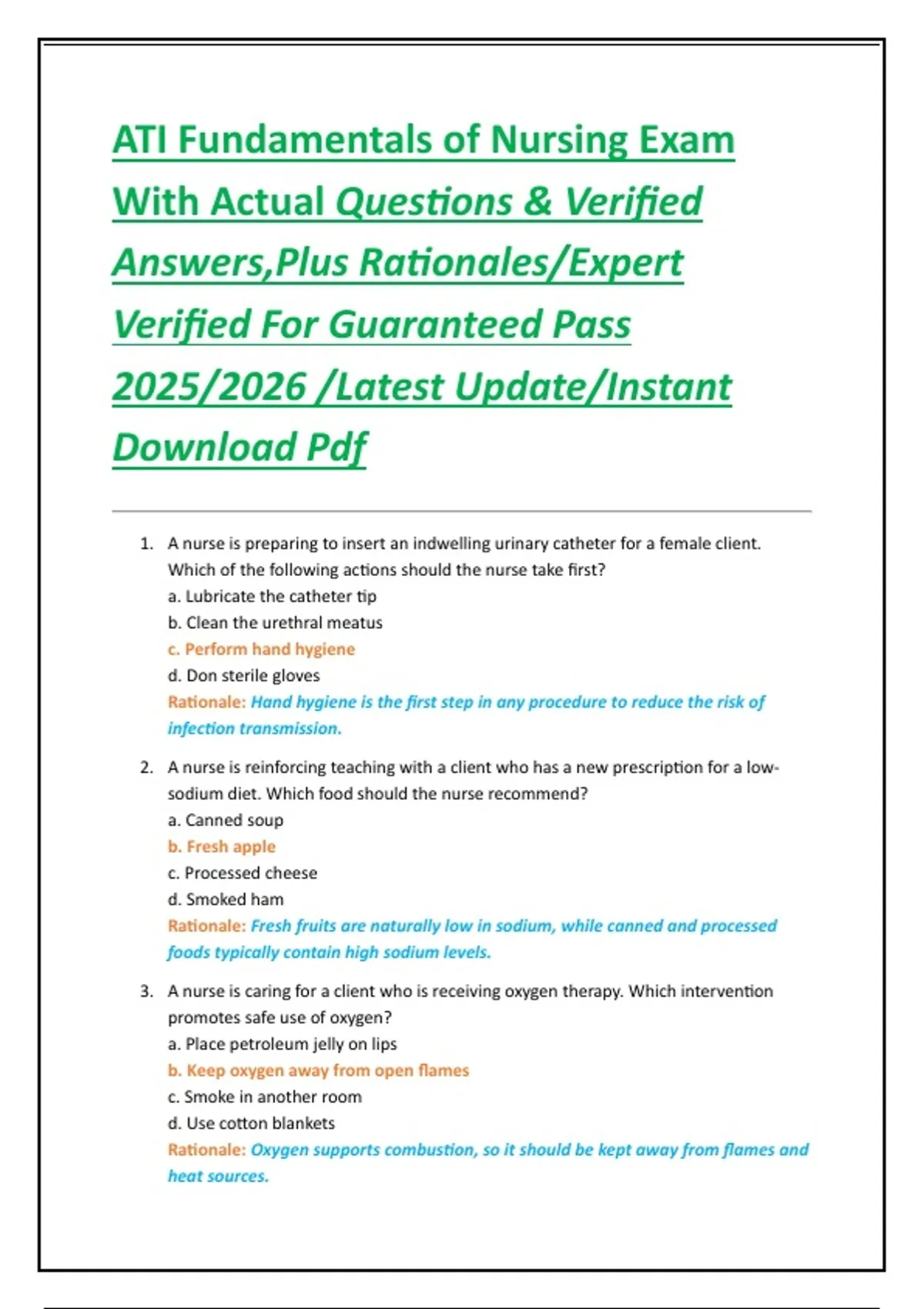 ATI Fundamentals of Nursing Exam With Actual Questions & Verified Answers,Plus Rationales/Expert Verified For Guaranteed Pass 2025/2026 /Latest Update/Instant Download Pdf