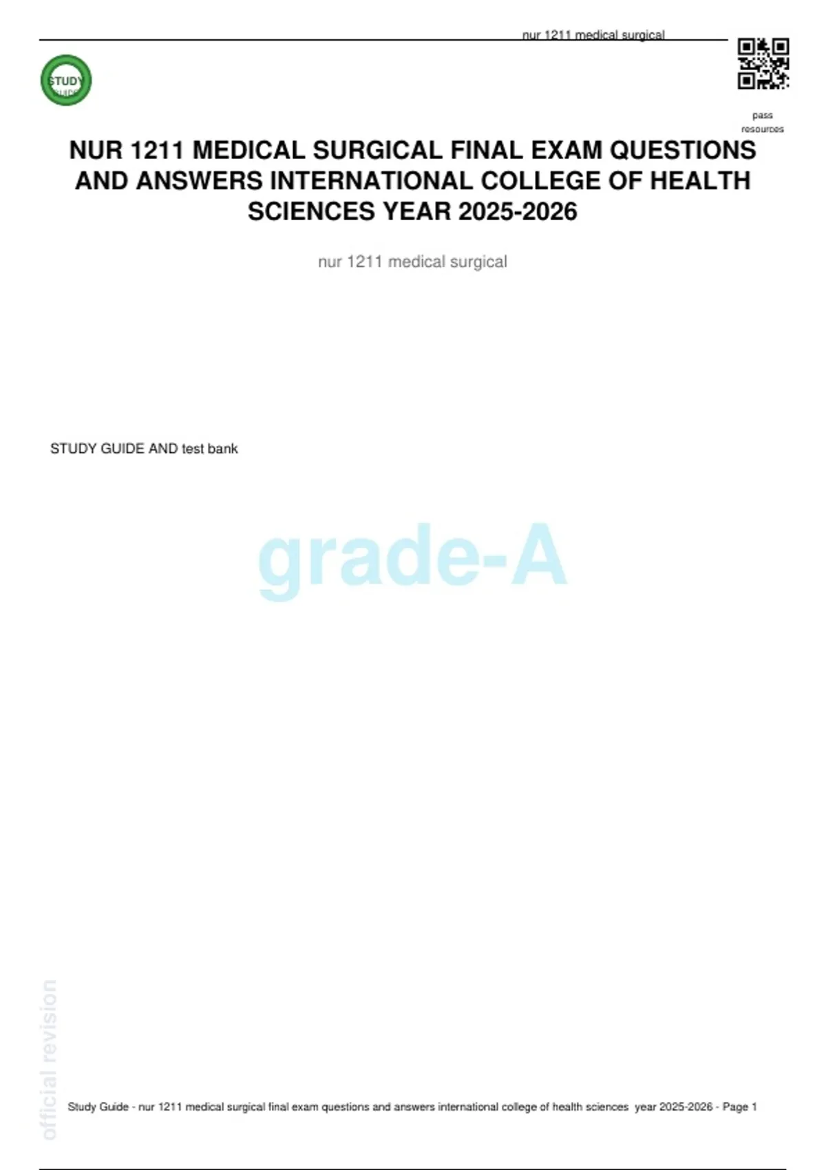 Study Guide - nur 1211 medical surgical final exam questions and answers international college of health sciences year 2025-2026 - Page 1