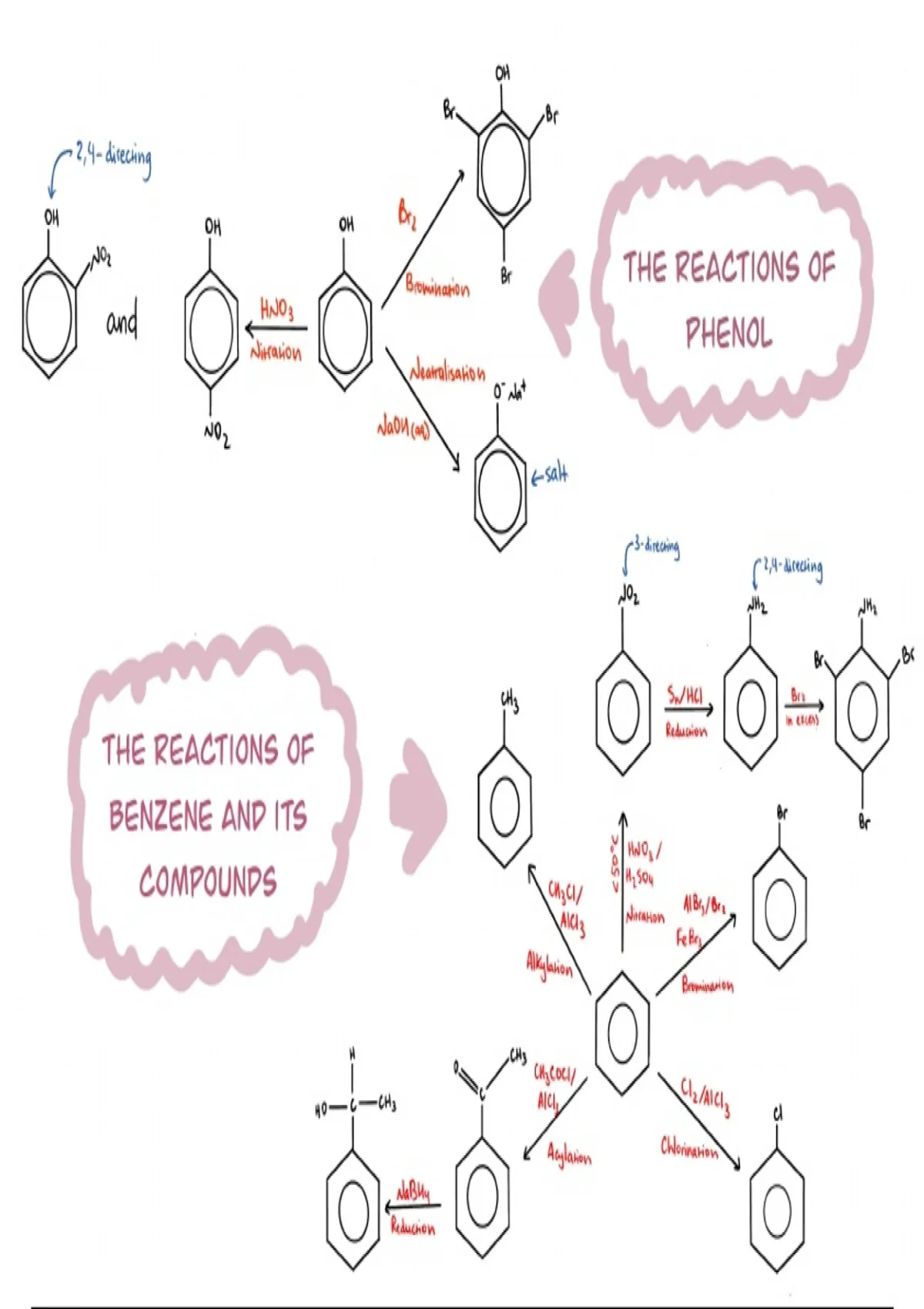 The notes provide detailed and organised information about aromatic synthesis routes, including reactions of phenols and benzene rings. The summary is based of the OCR (A) book and several revision websites combining the main specification points and mark-scheme friendly points and answers.