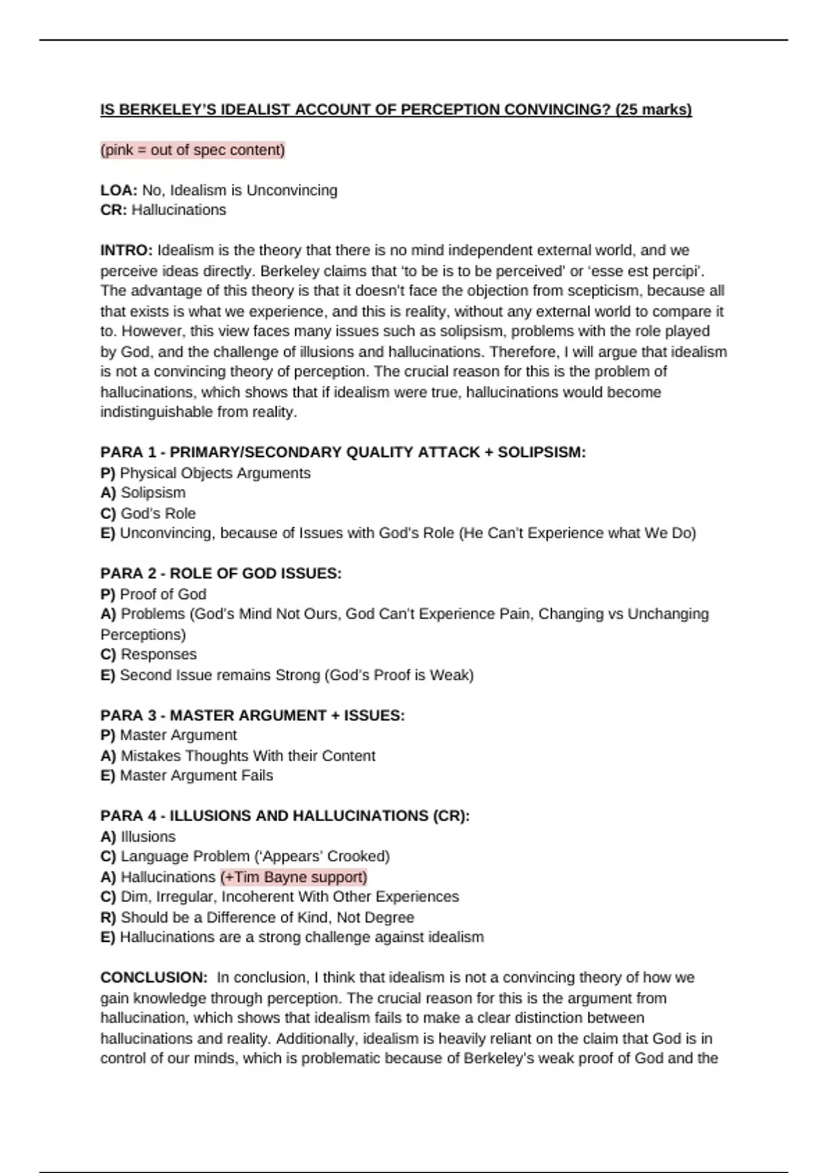 hallucinations and reality. Additionally, idealism is heavily reliant on the claim that God is in