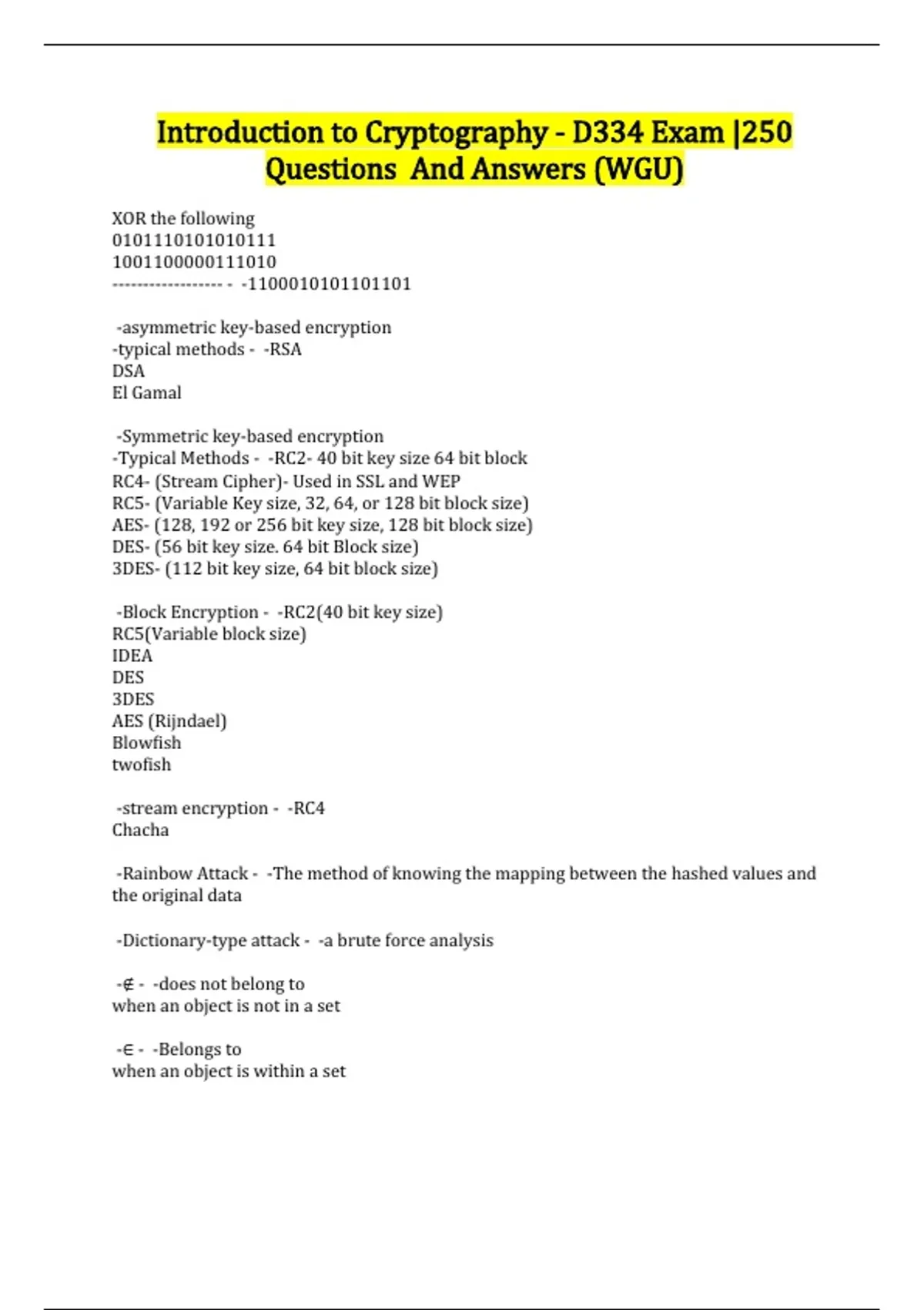 Introduction to Cryptography - D334 Exam |250