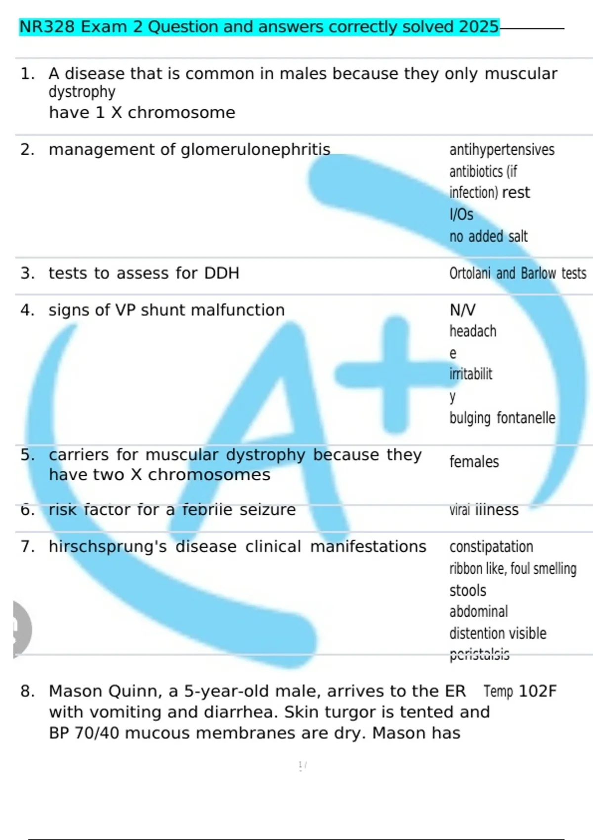 8. Mason Quinn, a 5-year-old male, arrives to the ER Temp 102F