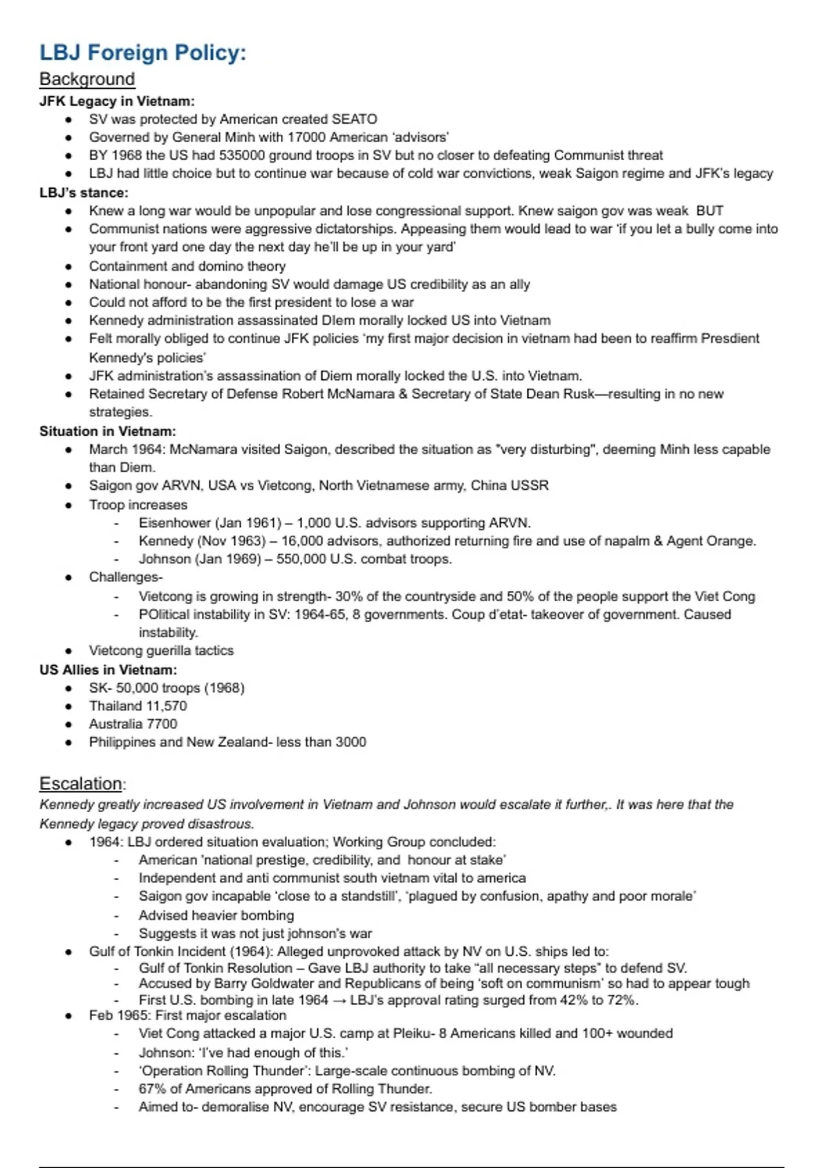 - Gulf of Tonkin Resolution – Gave LBJ authority to take “all necessary steps” to defend SV.