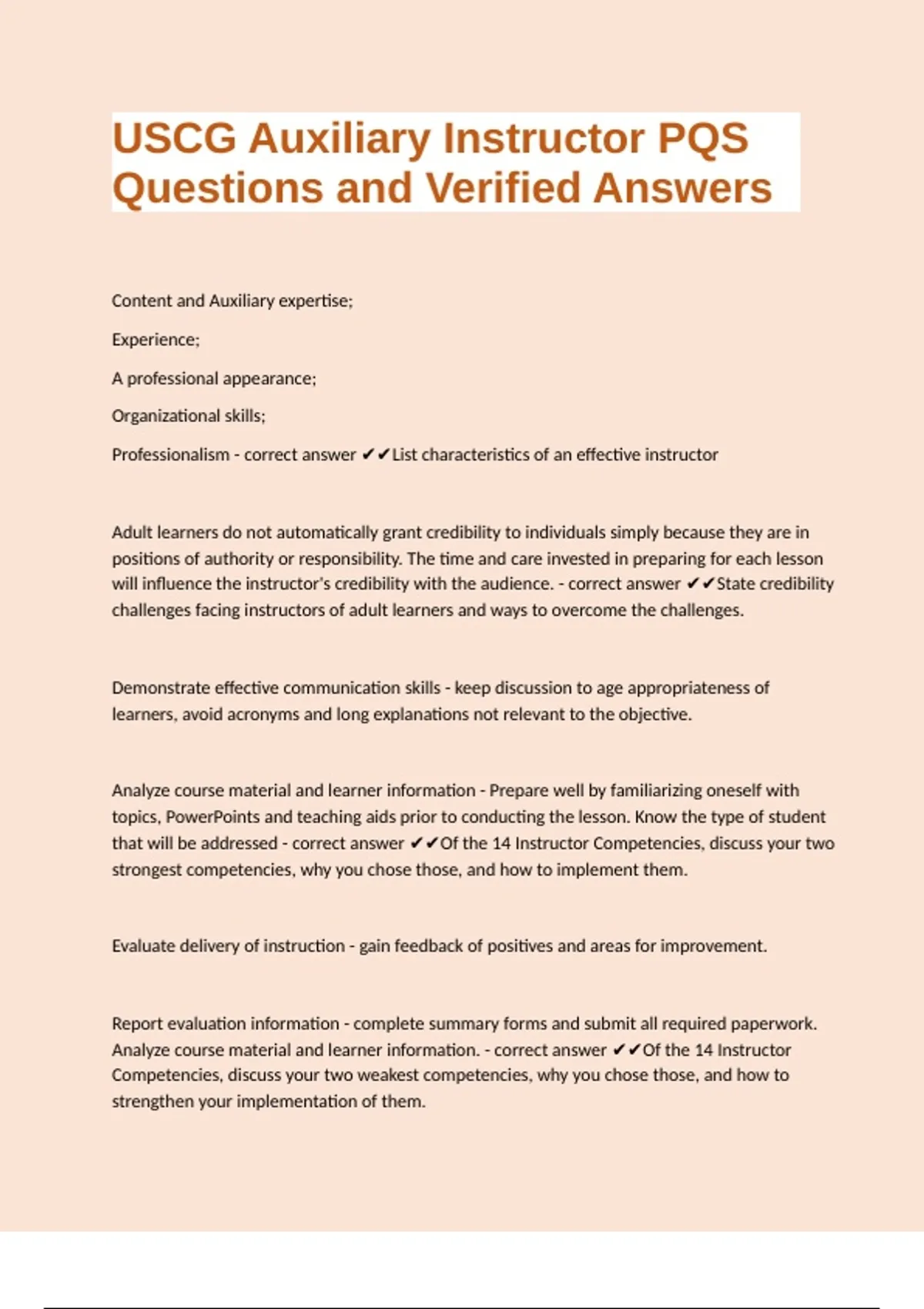that will be addressed - correct answer ✔✔Of the 14 Instructor Competencies, discuss your two