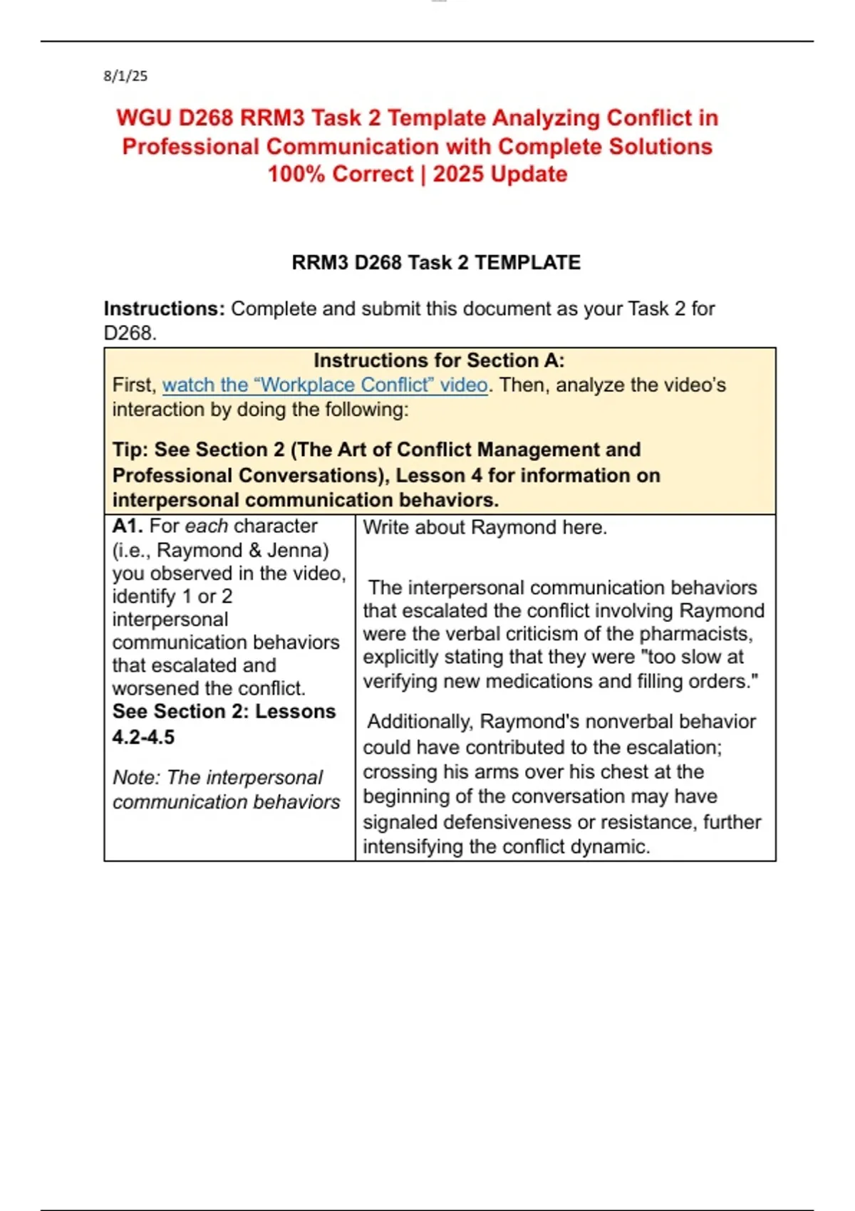 WGU D268 RRM3 Task 2 Template Analyzing Conflict in Professional Communication with Complete Solutions 100% Correct | 2025 Update