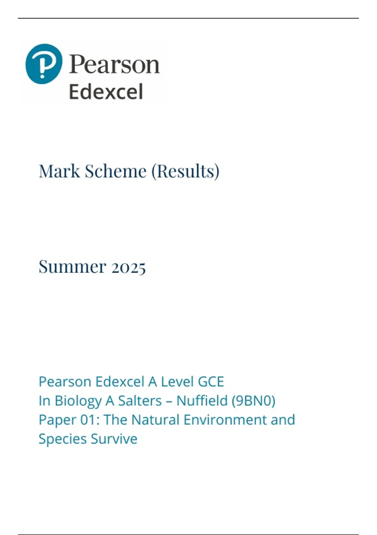In Biology A Salters – Nuffield (9BN0)