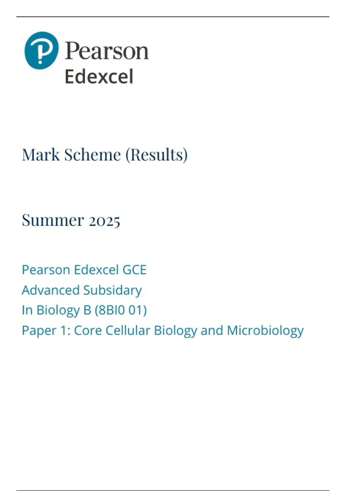 AS-Level Edexcel 2025 Biology B Paper 1 Mark Scheme