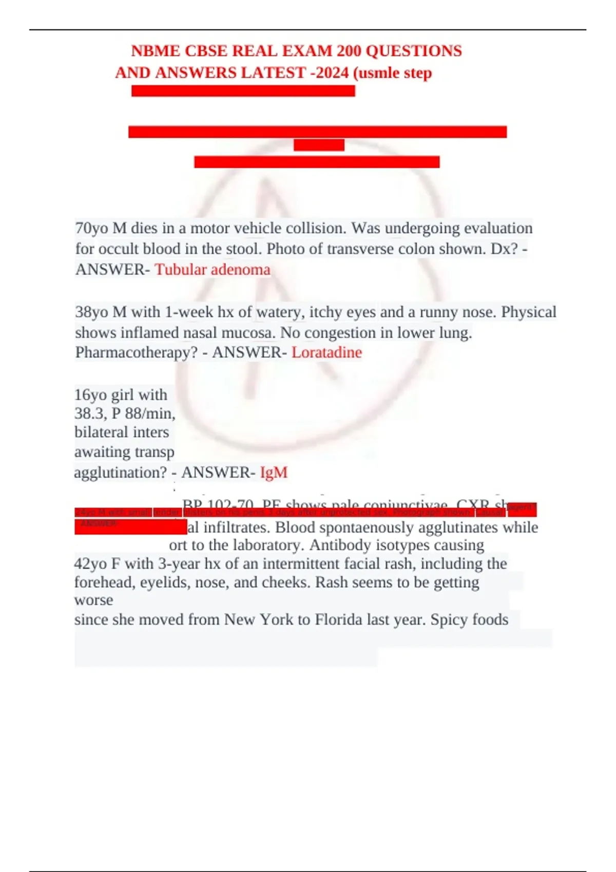 AND ANSWERS LATEST -2024 (usmle step
