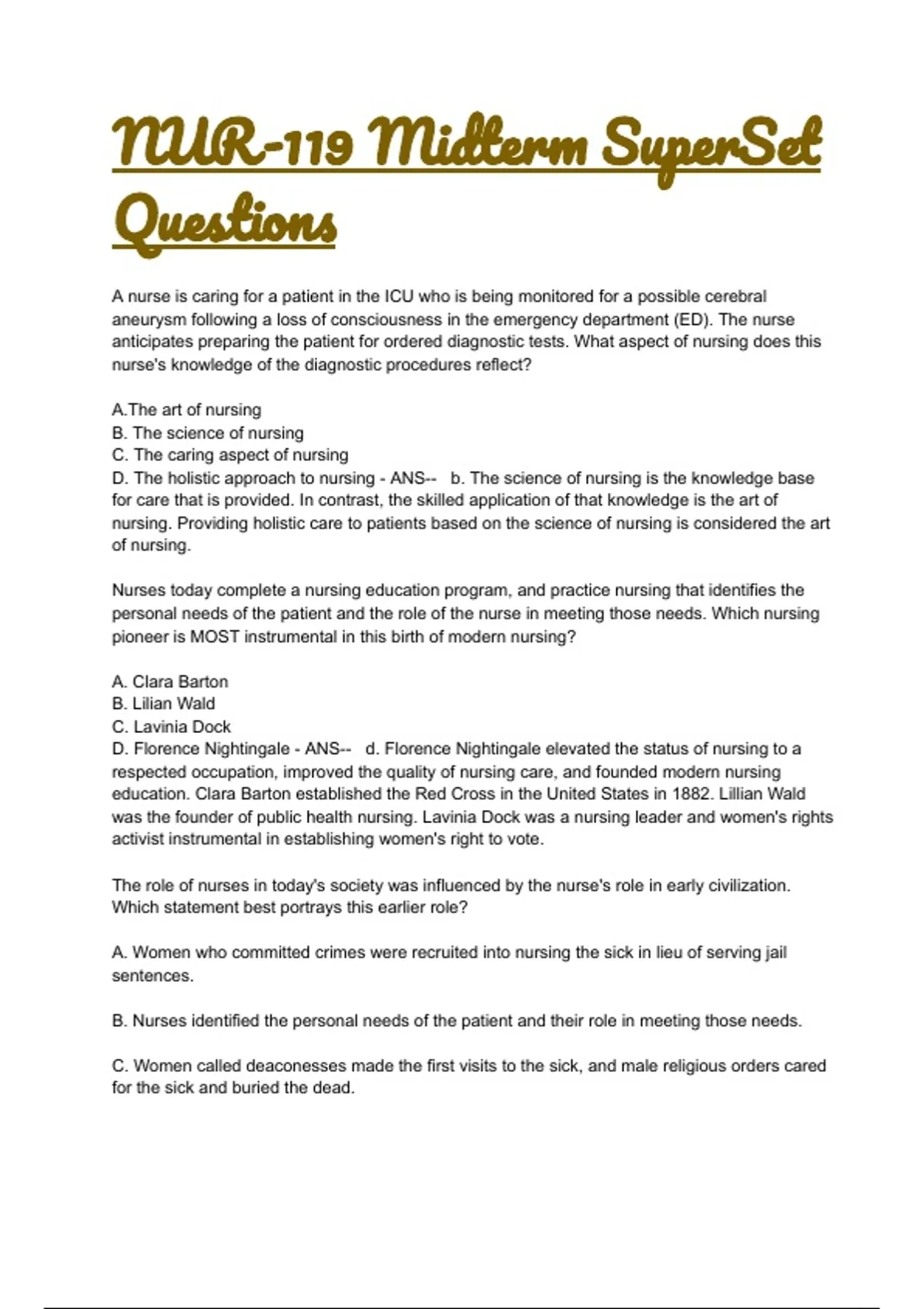 remedies. - ANS-- d. In early civilizations, the nurse usually was the mother who cared for her