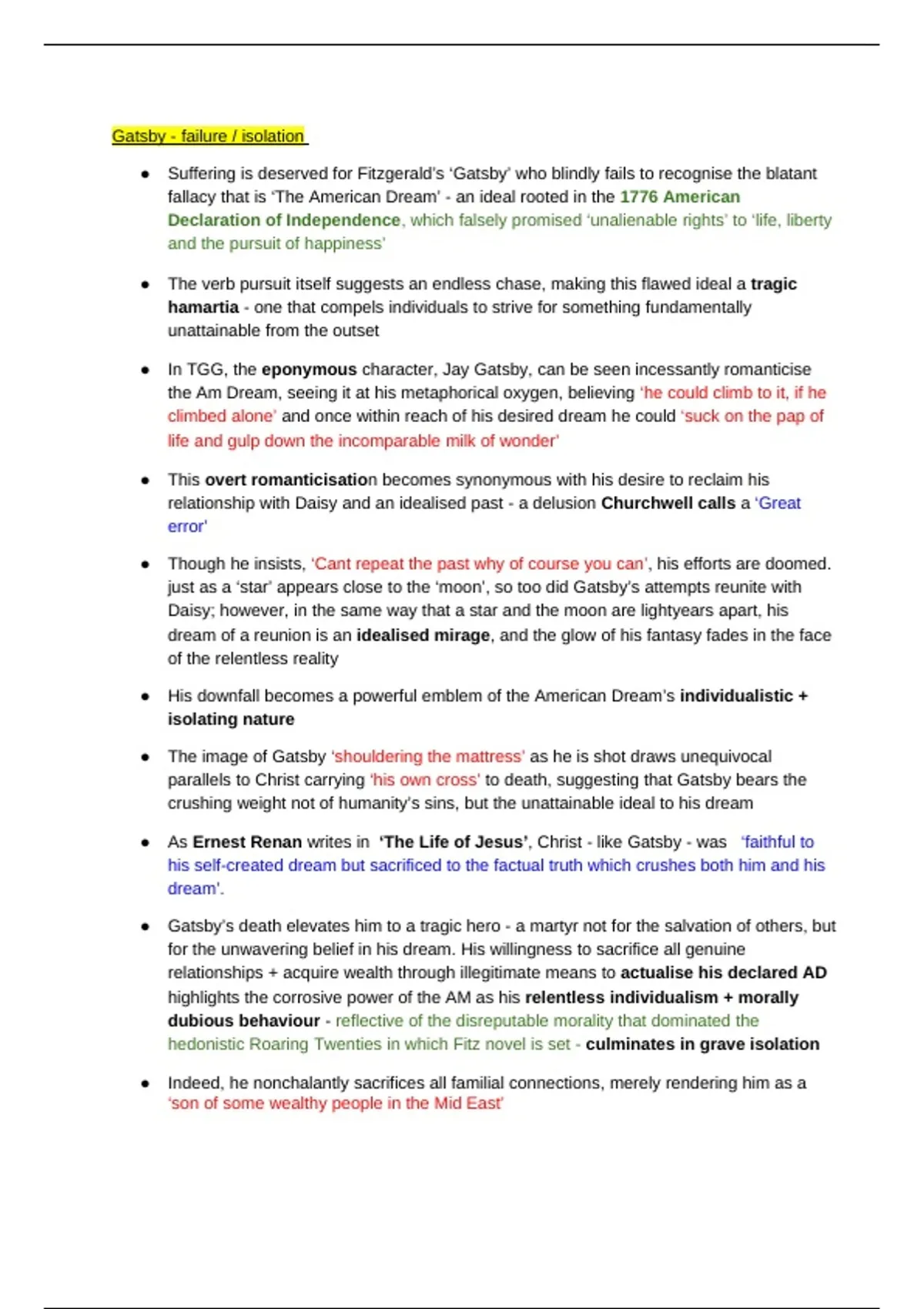 , ● Fitzgerald’s claim that Gatsby ‘paid a high price for living too long with a single dream’