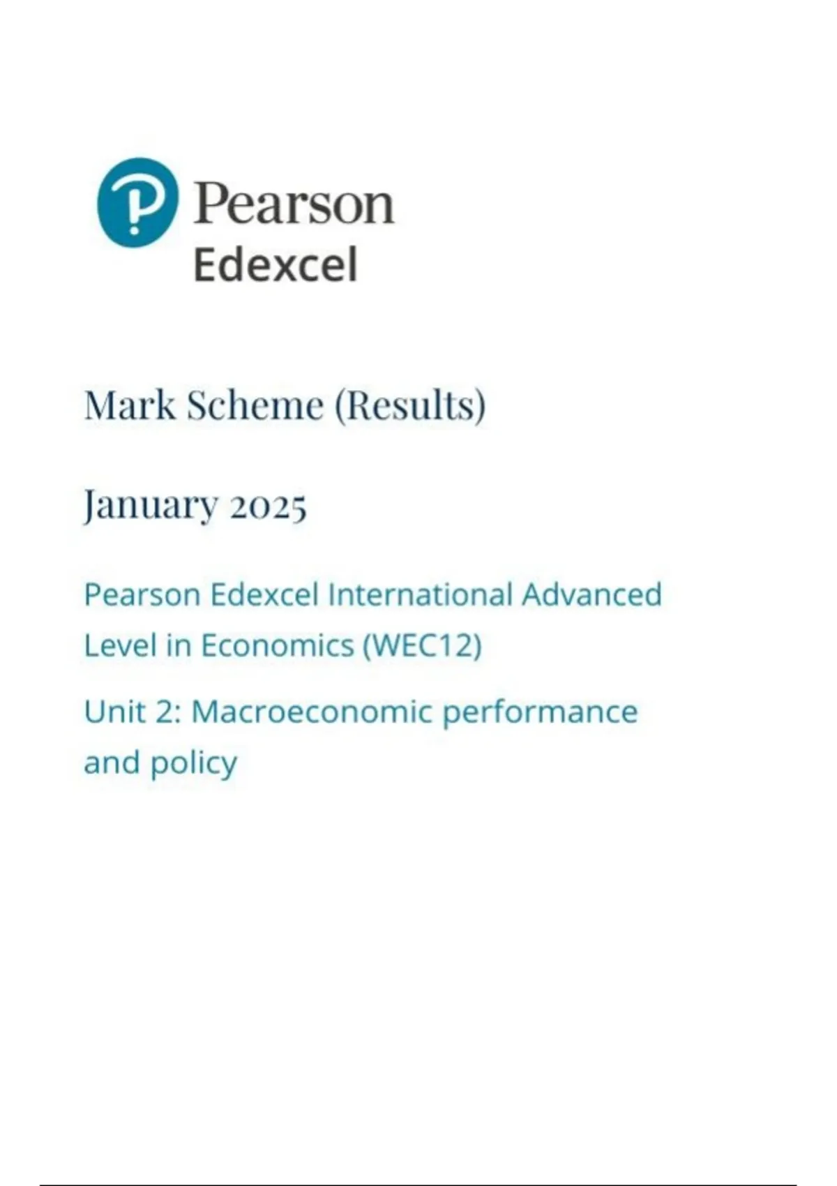 Pearson Edexcel IAL in Economics (WEC12)UNIT 2 JANUARY 2025 OFFICIAL MARKSCHEME-Macroeconomic performance and policy THIS IS THE OFFICIAL DOCUMENT