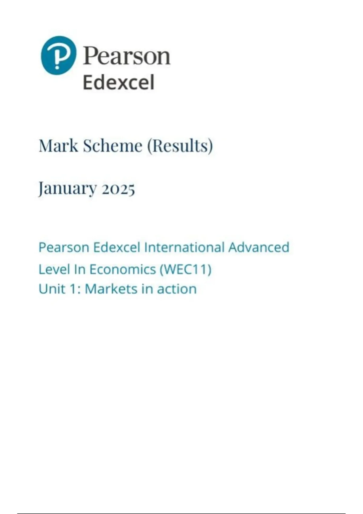 Pearson Edexcel IAL in Economics (WEC11)UNIT 1 JANUARY 2025 OFFICIAL MARKSCHEME- Markets in action THIS IS THE OFFICIAL DOCUMENT