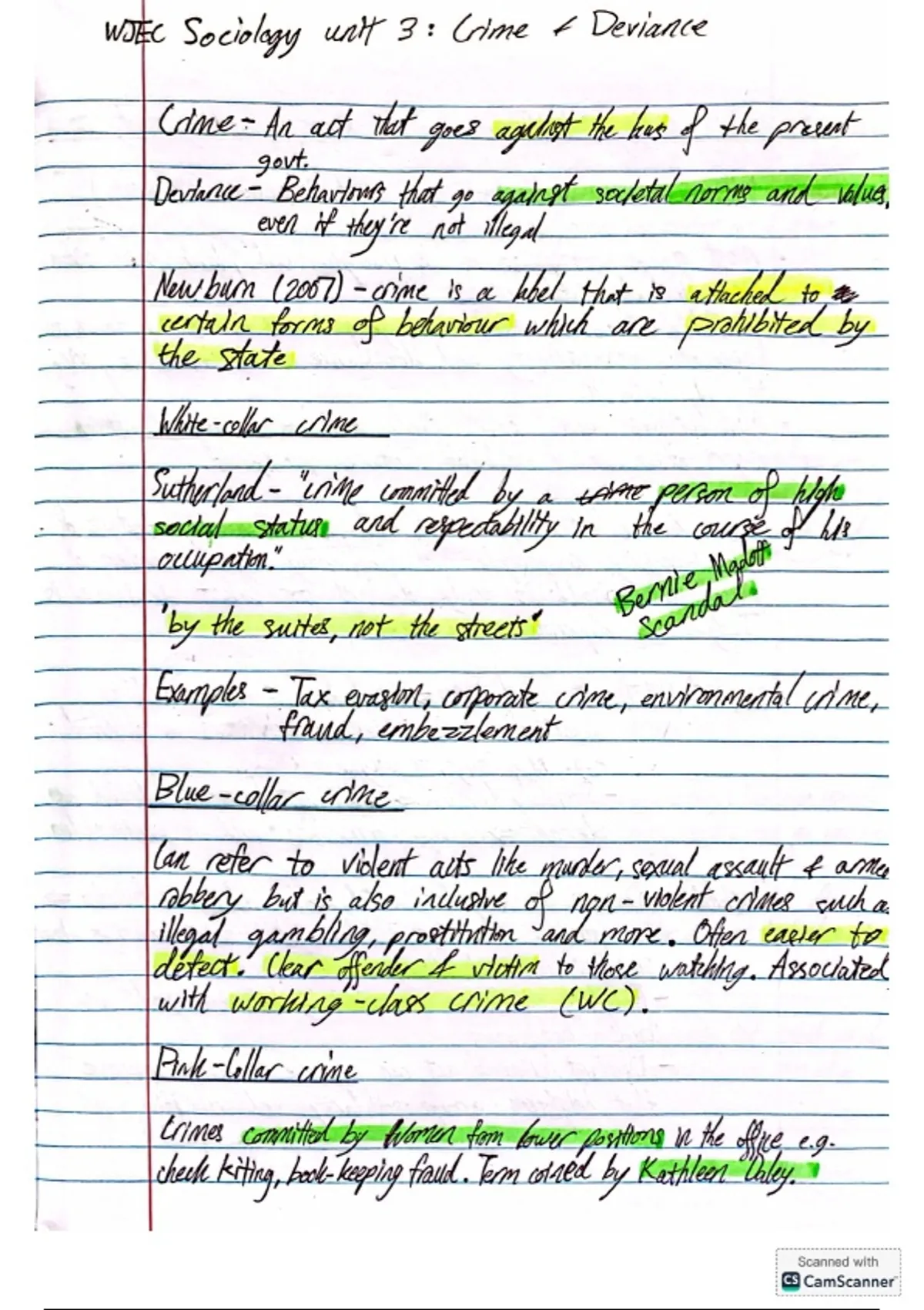 Summary Sociology Unit 3 Crime and Deviance Part 1