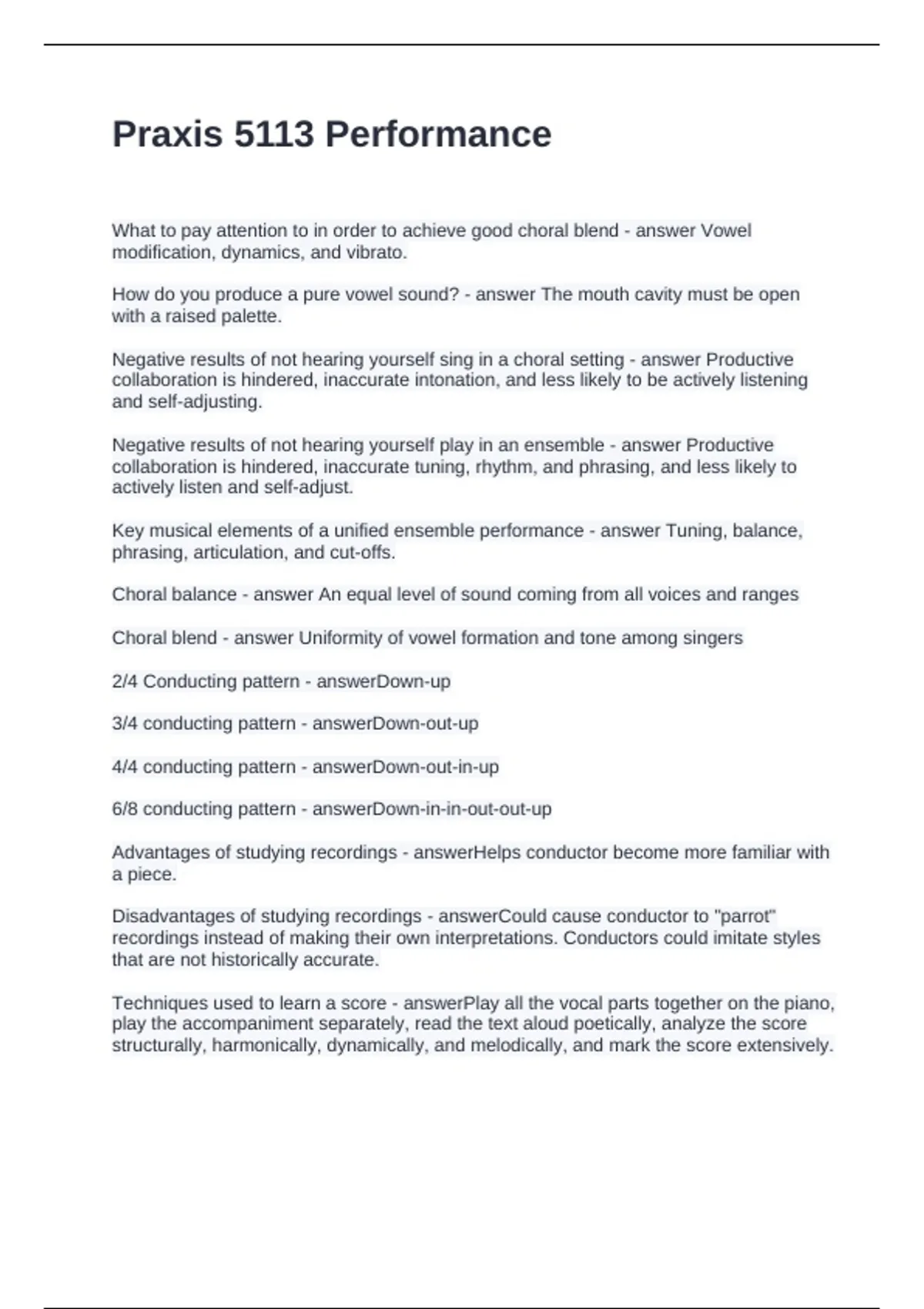Key musical elements of a unified ensemble performance - answer Tuning, balance,