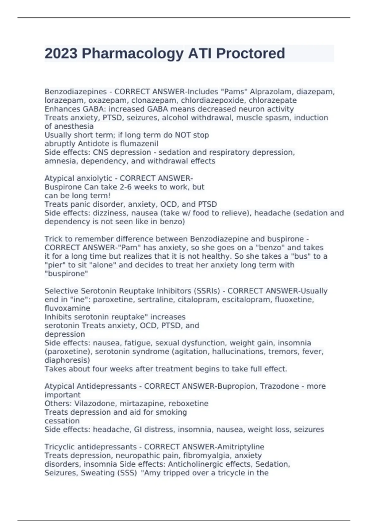 Benzodiazepines - CORRECT ANSWER-Includes "Pams" Alprazolam, diazepam,