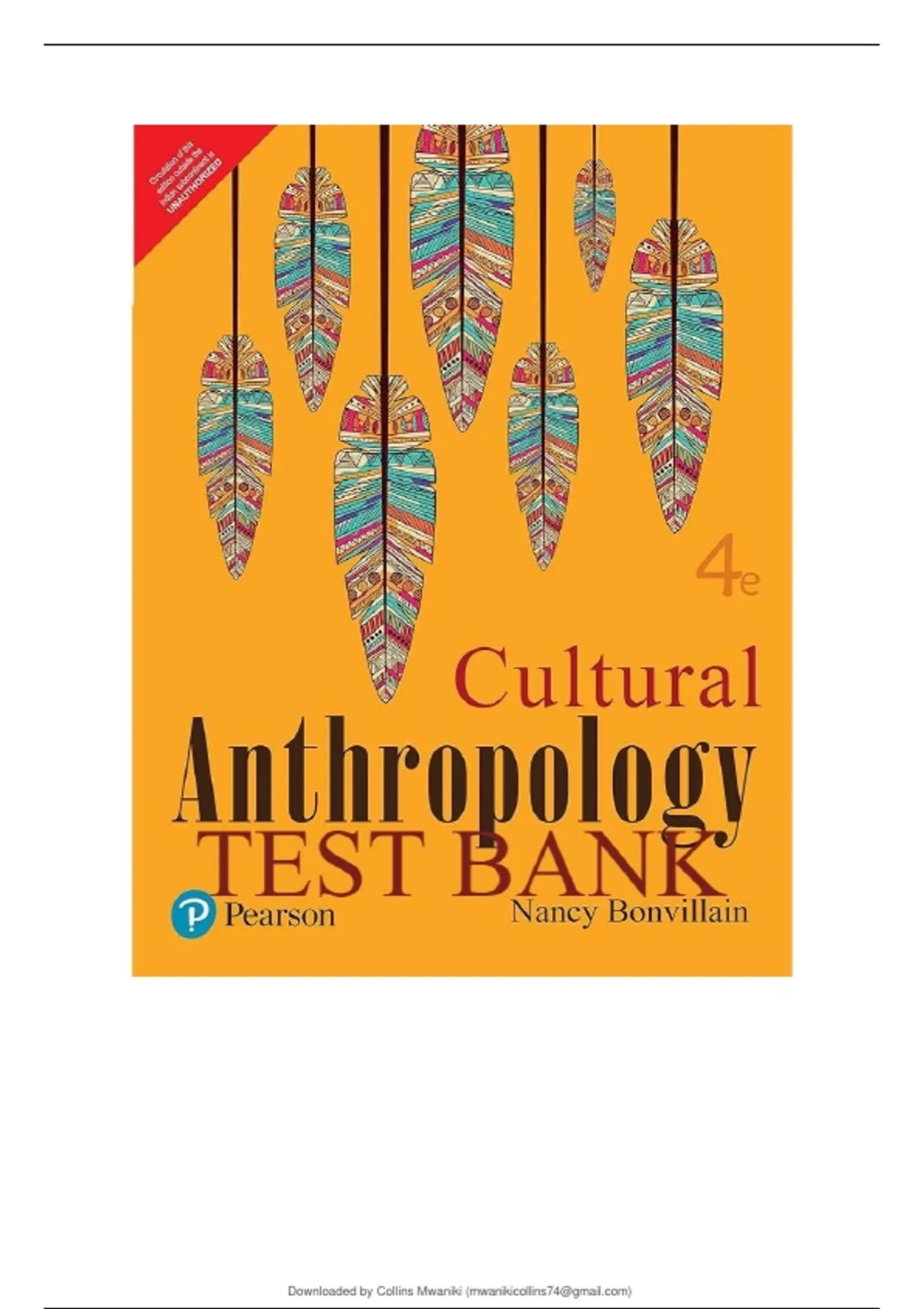Ace your Cultural Anthropology exams with the ultimate study resource! This is the complete, official Test Bank for Nancy Bonvillain's "Cultural Anthropology, 4th Edition" from Pearson Education. This digital download is an indispensable tool for any student aiming for top grades. What's Inside? Over 800 Multiple-Choice Questions from Chapters 1 through 10, complete with verified answers and page references. 90+ Essay/Practice Questions to help you master critical thinking and essay writing for your exams. Difficulty Tags: Each question is tagged by cognitive level (Remember, Understand, Apply, Analyze, Evaluate, Create) so you can tailor your study sessions from basic recall to advanced analysis. Full Coverage: Everything from core concepts of culture, language, and kinship to economics, colonialism, and globalization is covered in depth. Why Choose This Test Bank? Maximize Your Study Time: Stop guessing what's on the test. Practice with real questions that reflect the material and format your professor will use. Instant Access: Download immediately after purchase and start studying right away. Boost Your Confidence: Walk into your exam knowing you've already practiced with a comprehensive set of questions and understand the key concepts inside and out. This is the key to unlocking an A in your ANTH 101 (or similar course code) class. Invest in your success today!