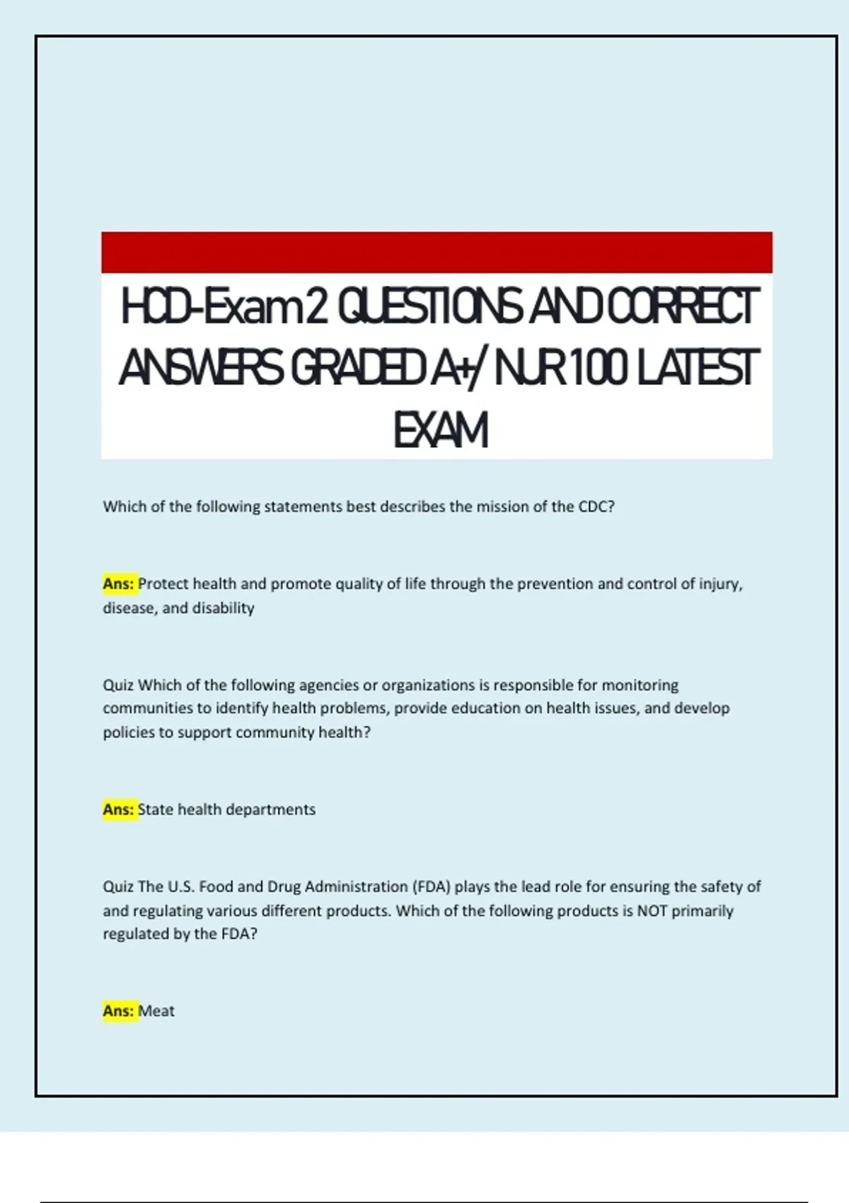 ANSWERS GRADED A+/ NUR 100 LATEST