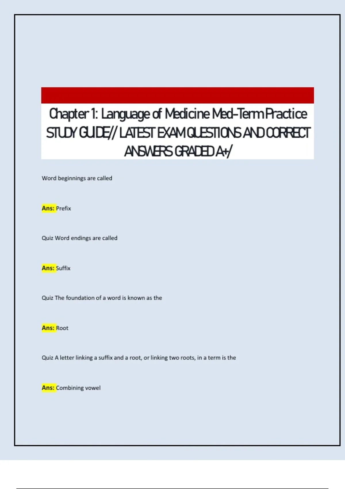 Chapter 1: Language of Medicine Med-Term Practice STUDY GUIDE// LATEST EXAM QUESTIONS AND CORRECT ANSWERS GRADED A+/