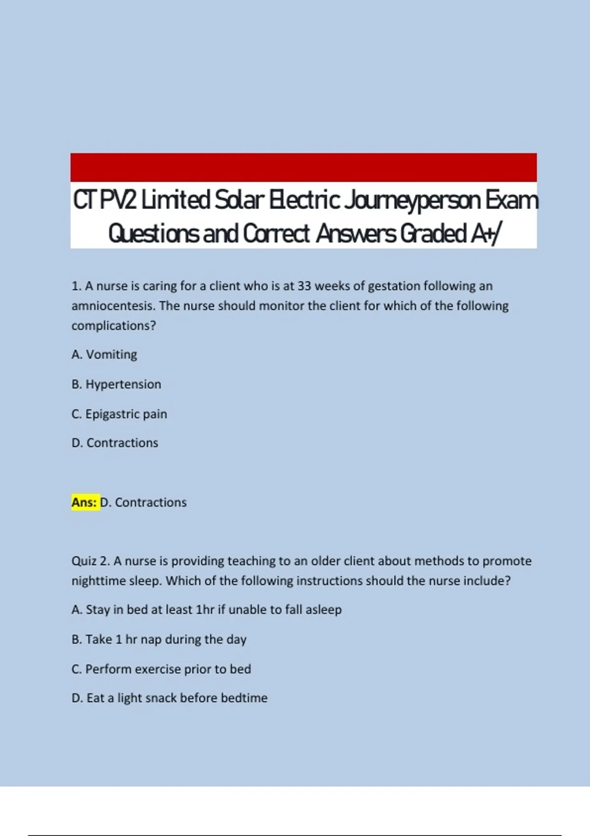 CT PV2 Limited Solar Electric Journeyperson Exam Questions and Correct Answers Graded A+/