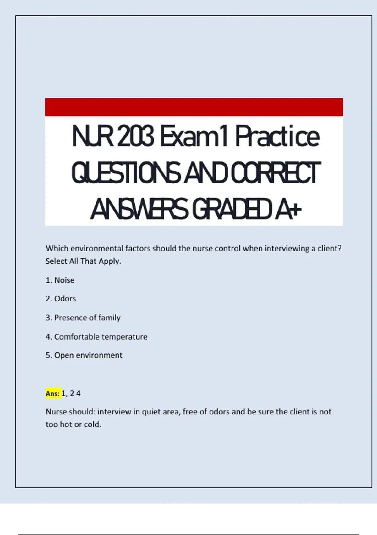 NUR 203 Exam 1 Practice QUESTIONS AND CORRECT ANSWERS GRADED A+