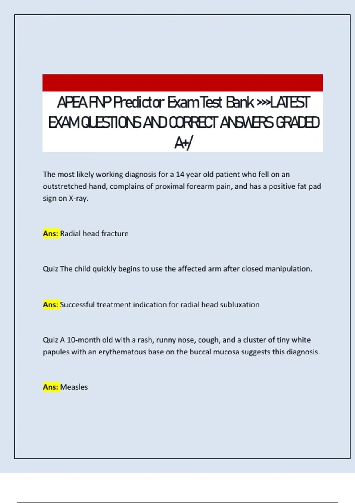 APEA FNP Predictor Exam Test Bank LATEST EXAM QUESTIONS AND CORRECT ANSWERS GRADED A+/