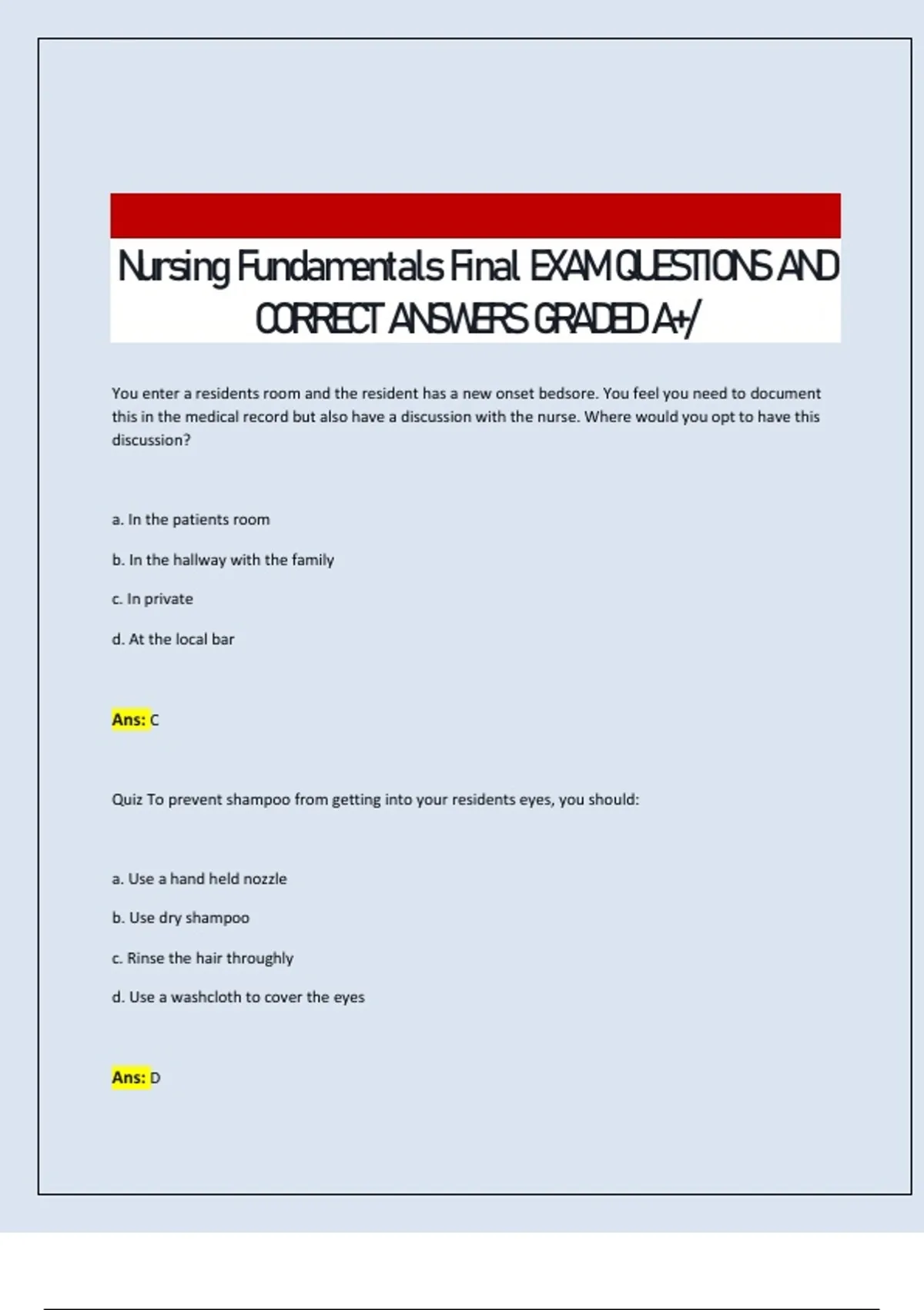 Quiz To prevent shampoo from getting into your residents eyes, you should: