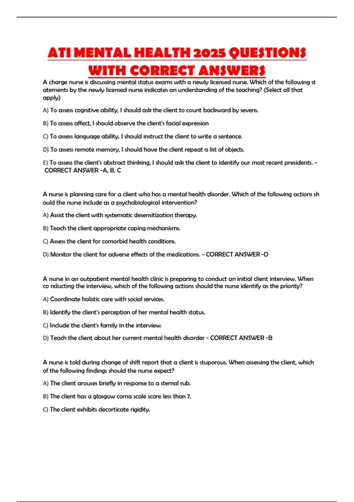 ABcharge nurse is discussing mental status exams with a newly licensed nurse. Which of the following st