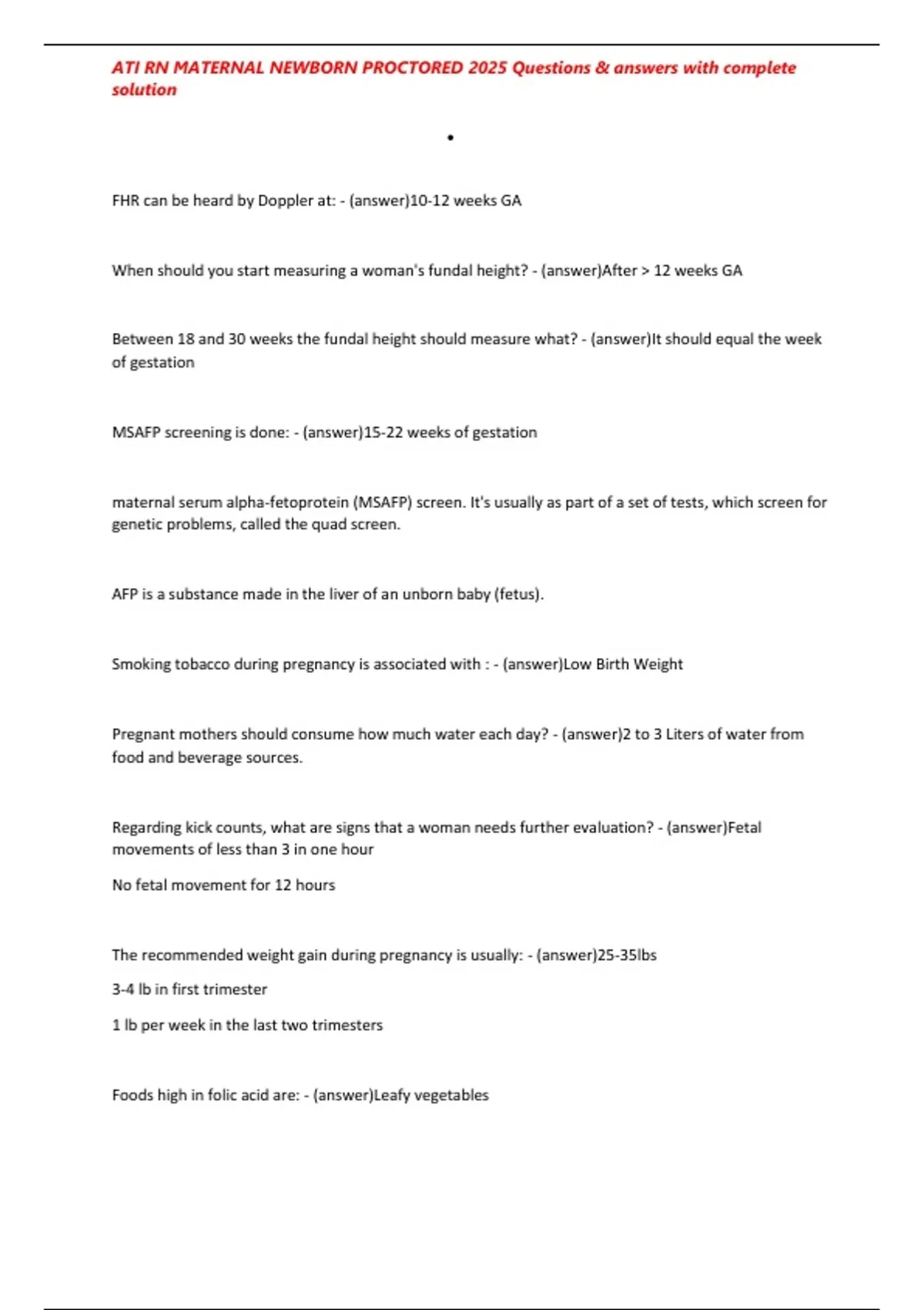 , ATI RN MATERNAL NEWBORN PROCTORED 2025 Questions & answers with complete