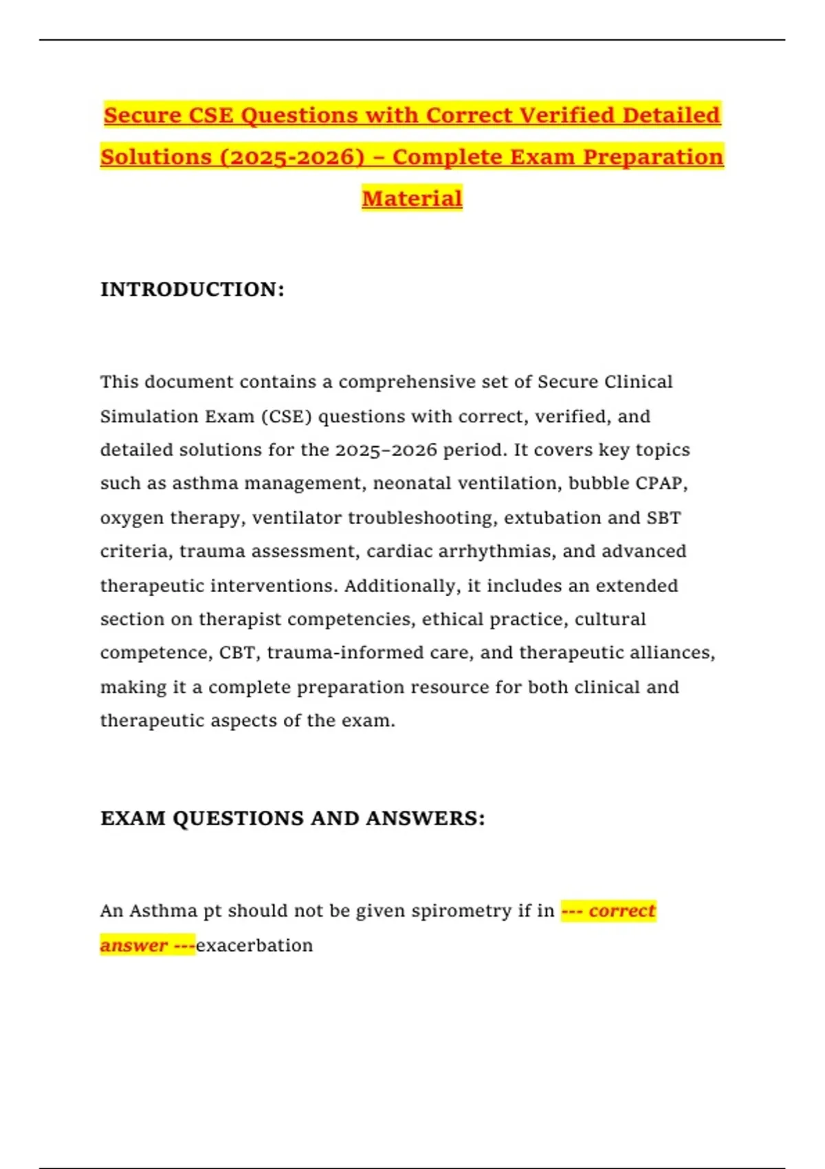 Simulation Exam (CSE) questions with correct, verified, and