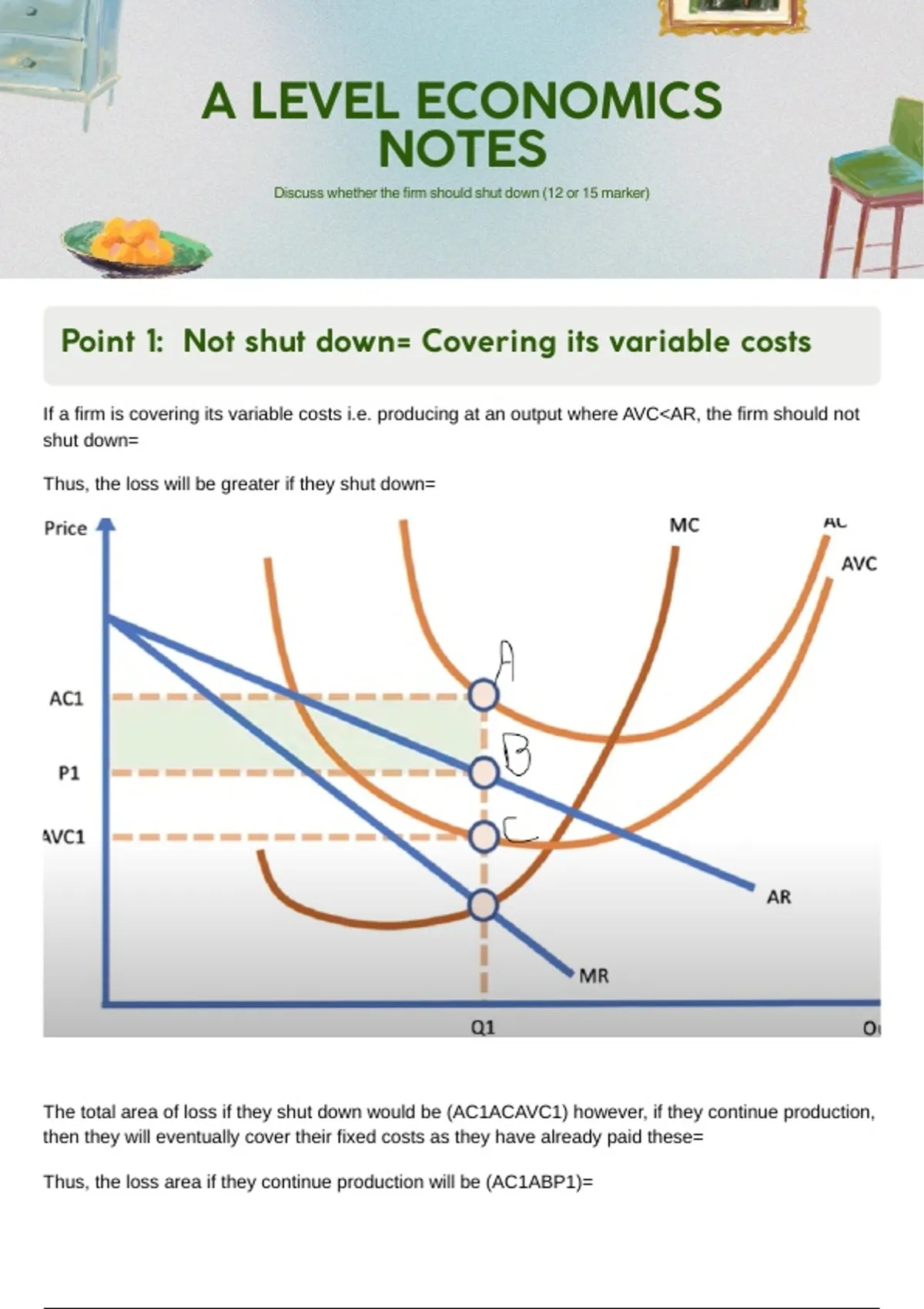 The total area of loss if they shut down would be (AC1ACAVC1) however, if they continue production,