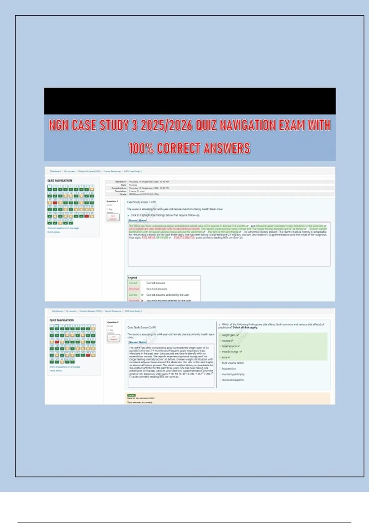 NGN CASE STUDY 3 2025/2026 QUIZ NAVIGATION EXAM WITH 100% CORRECT ANSWERS