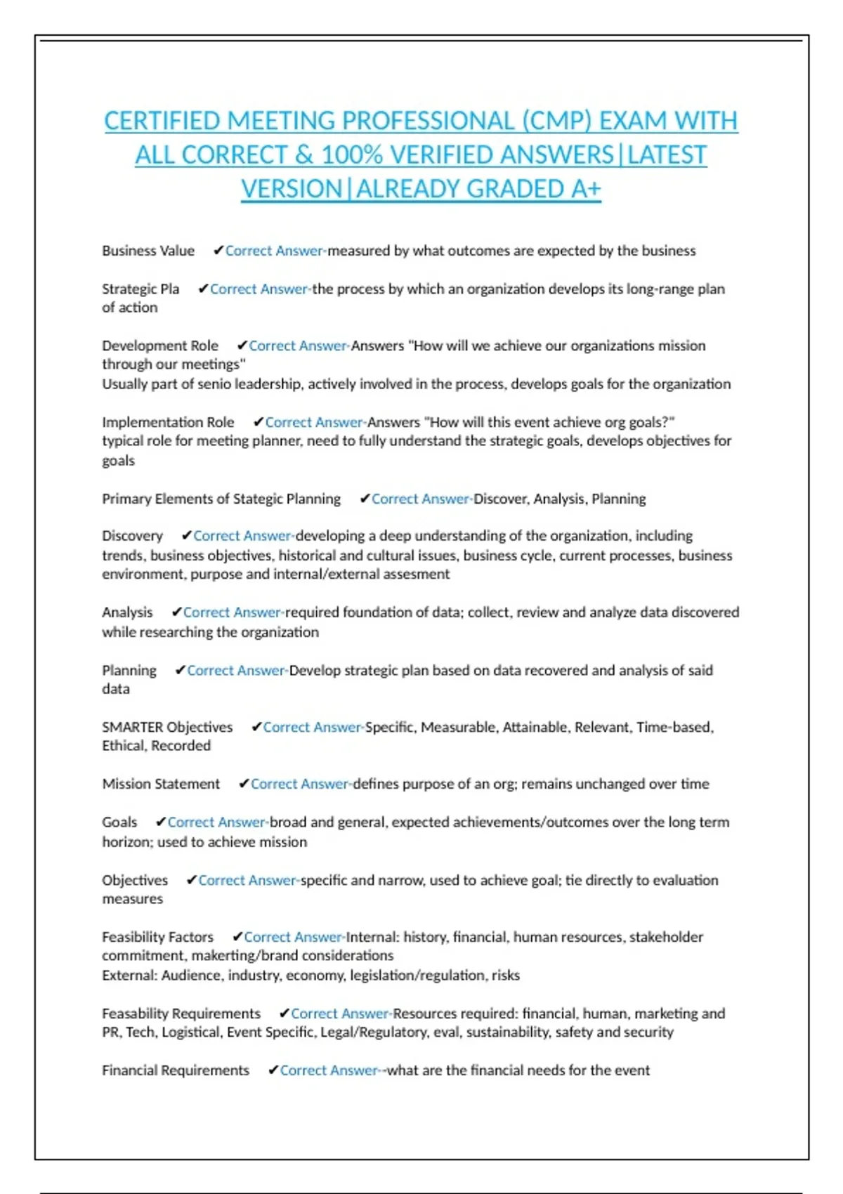 Strategic Meetings Management Plan (SMMP) ✔Correct Answer-- Involved developing and
